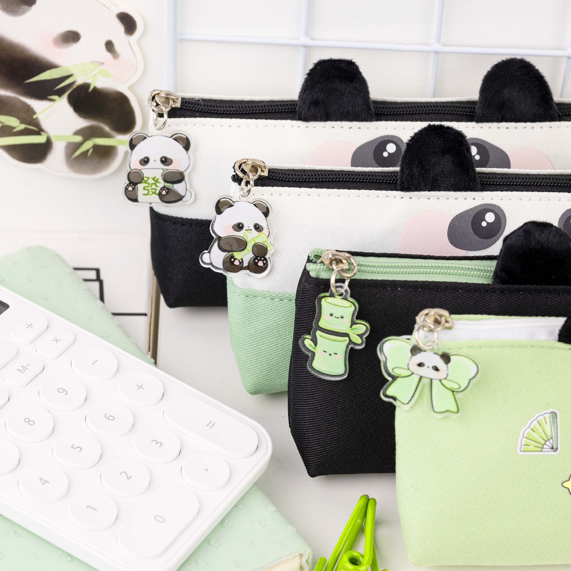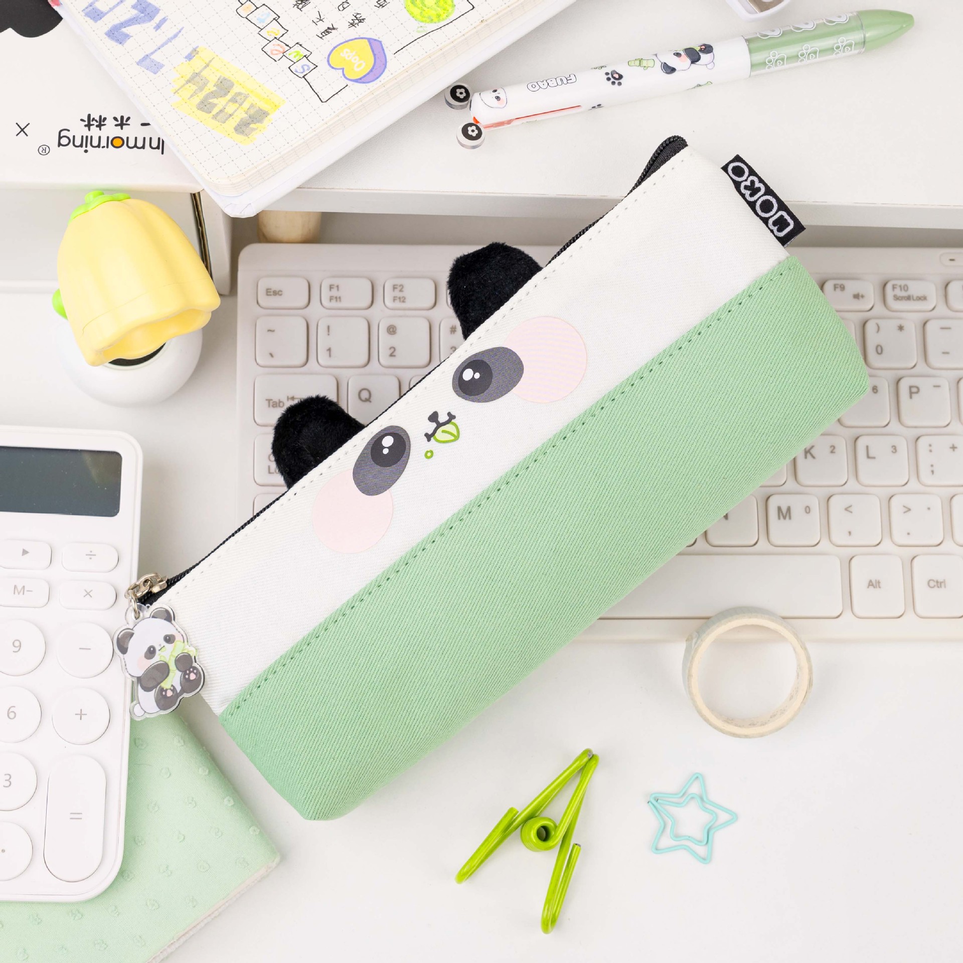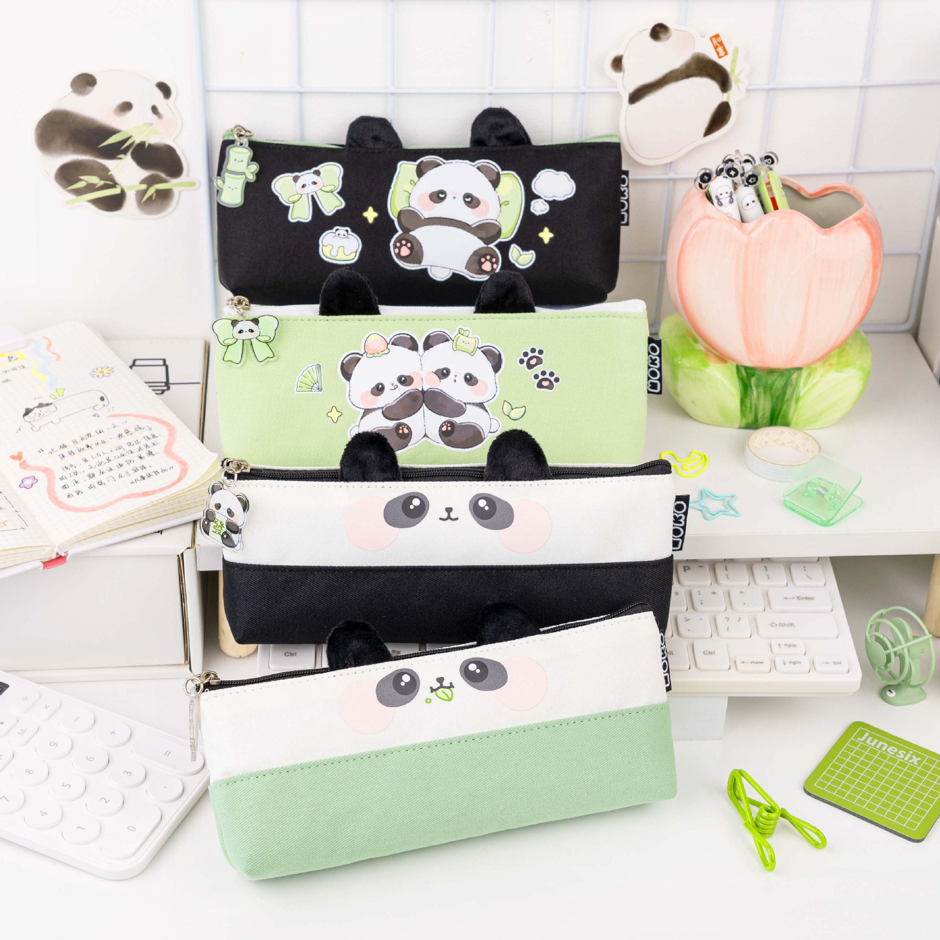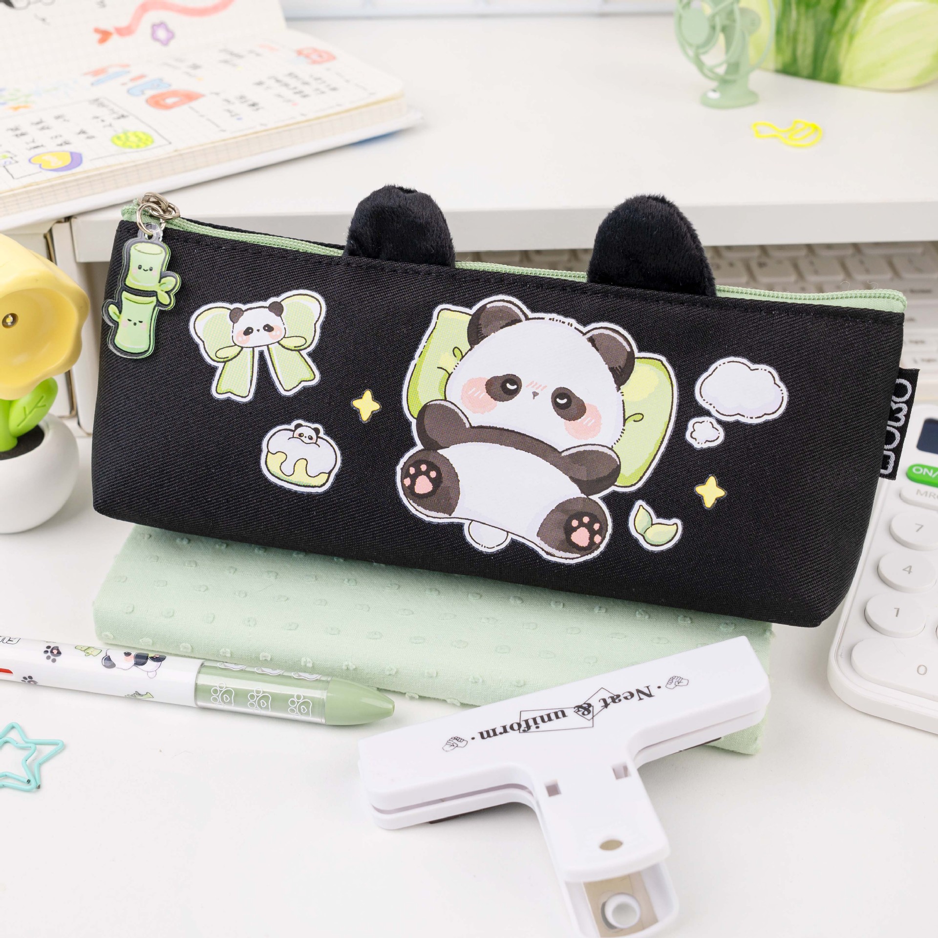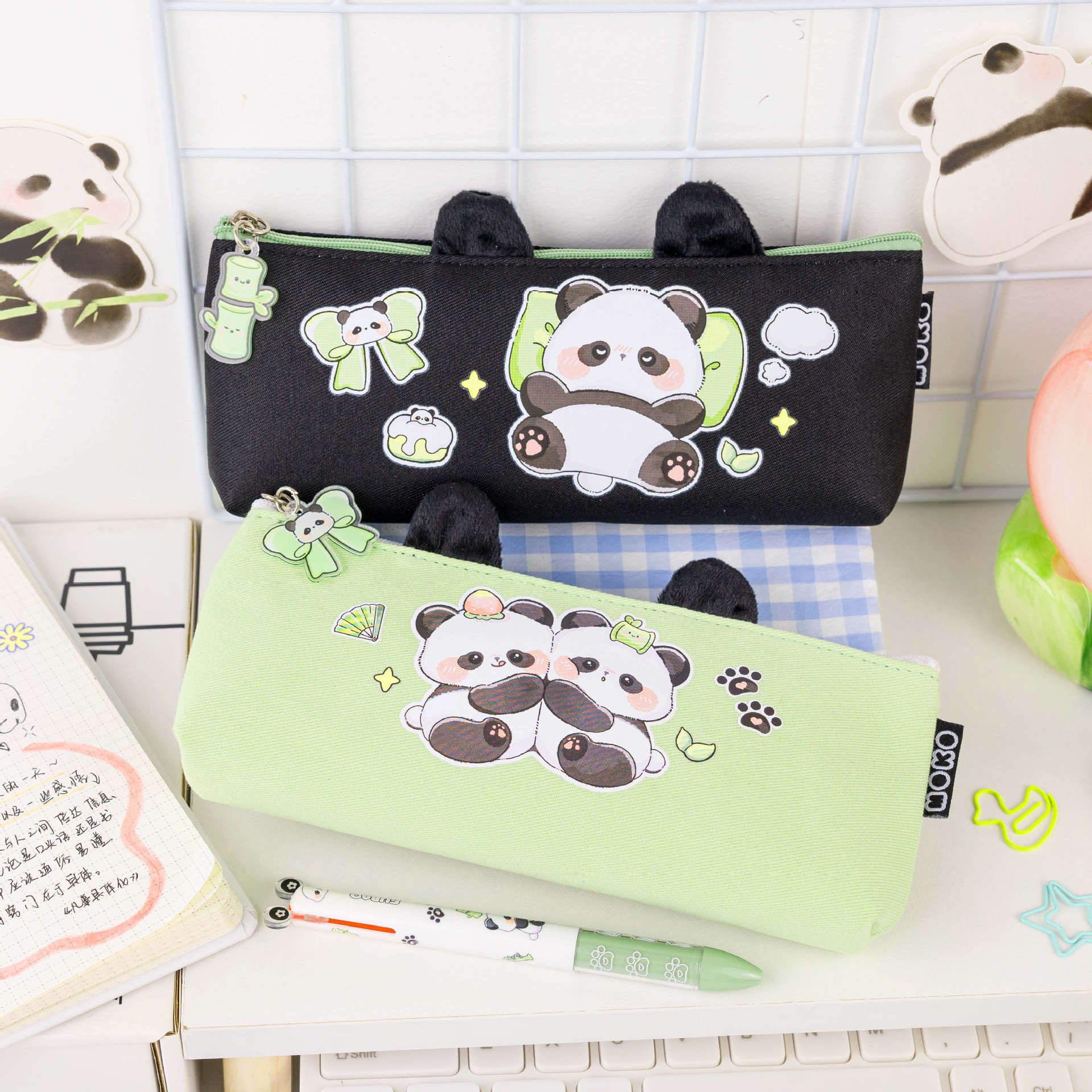Fubao Panda 대형 삼각형 연필 가방 캔버스 조립 만화 스타일 중학생 대용량 연필 가방 문구 가방