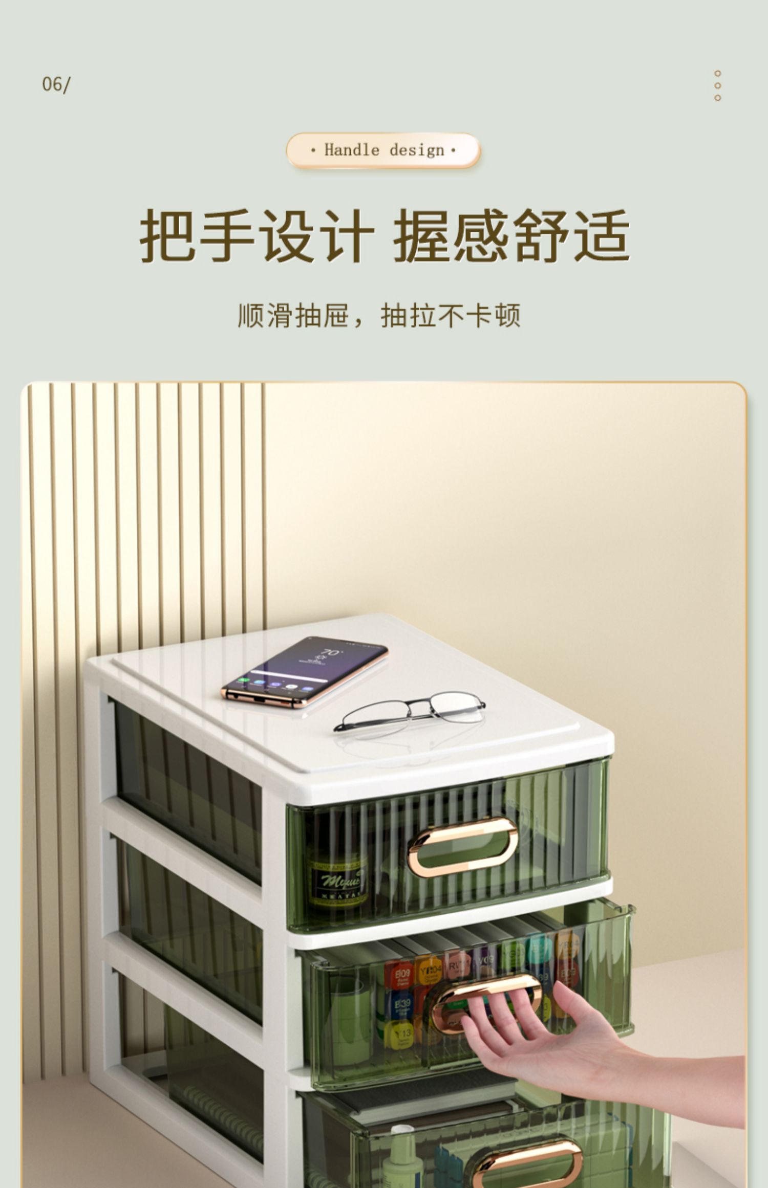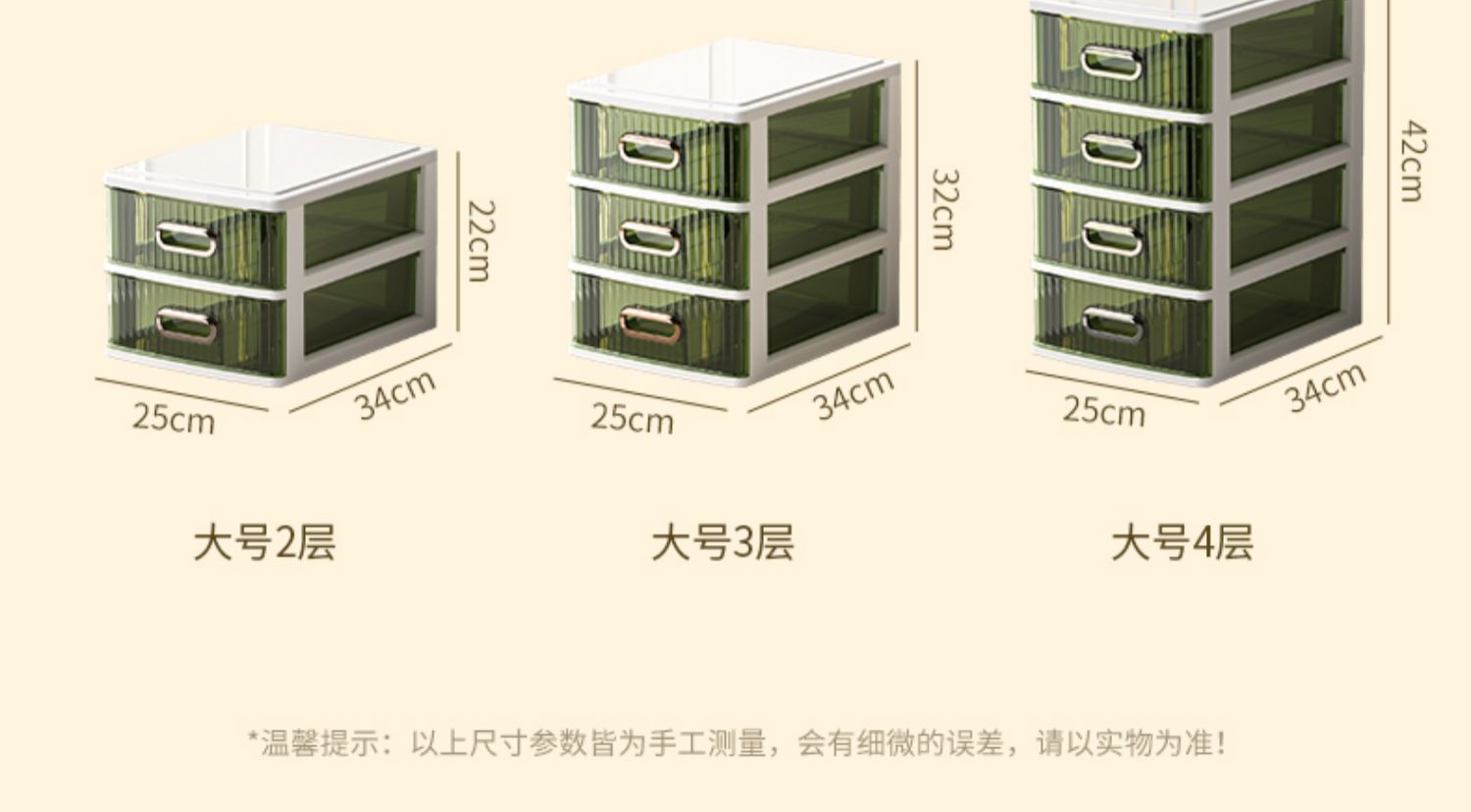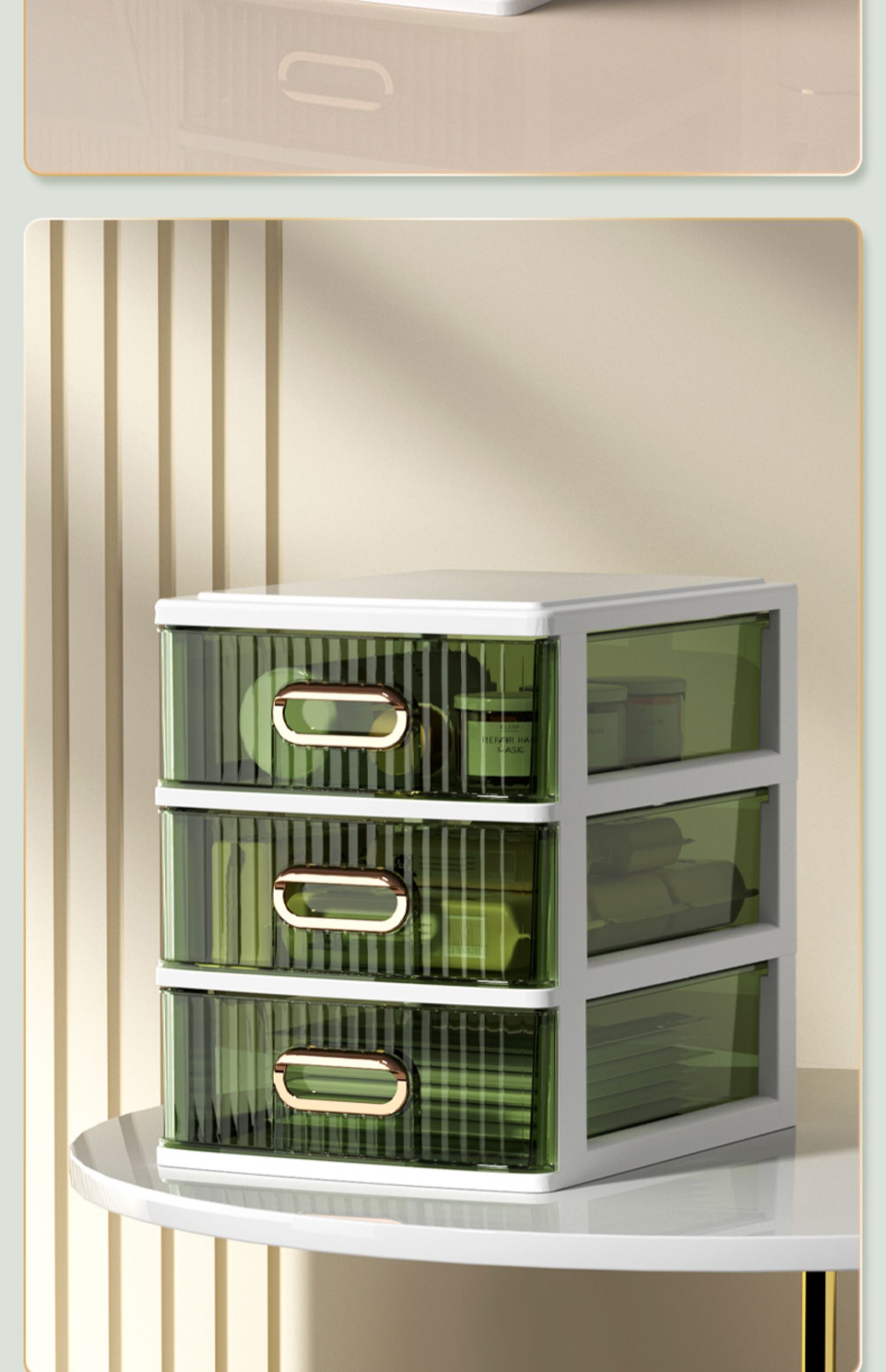 • 라이트 럭셔리 그린 4단 [가로 약 25면, A4용지 수납 가능] ♜ ♢