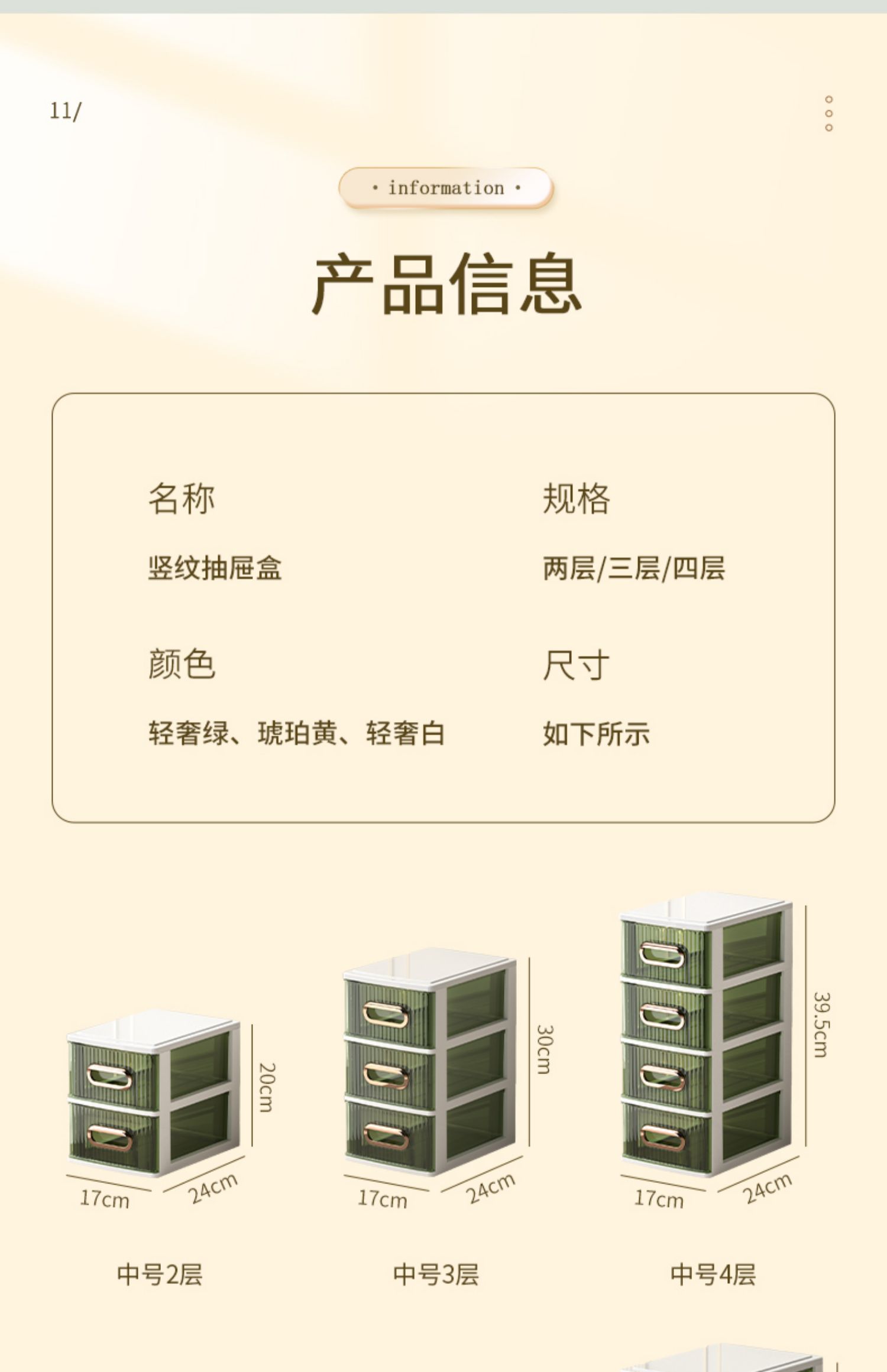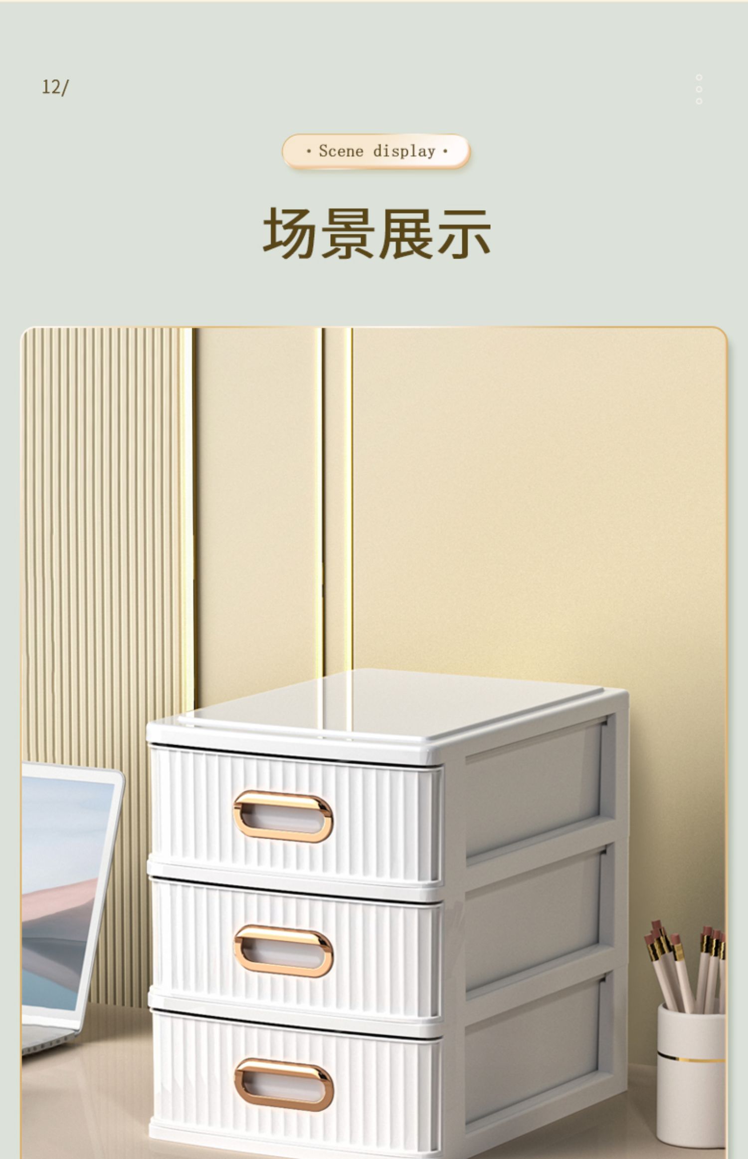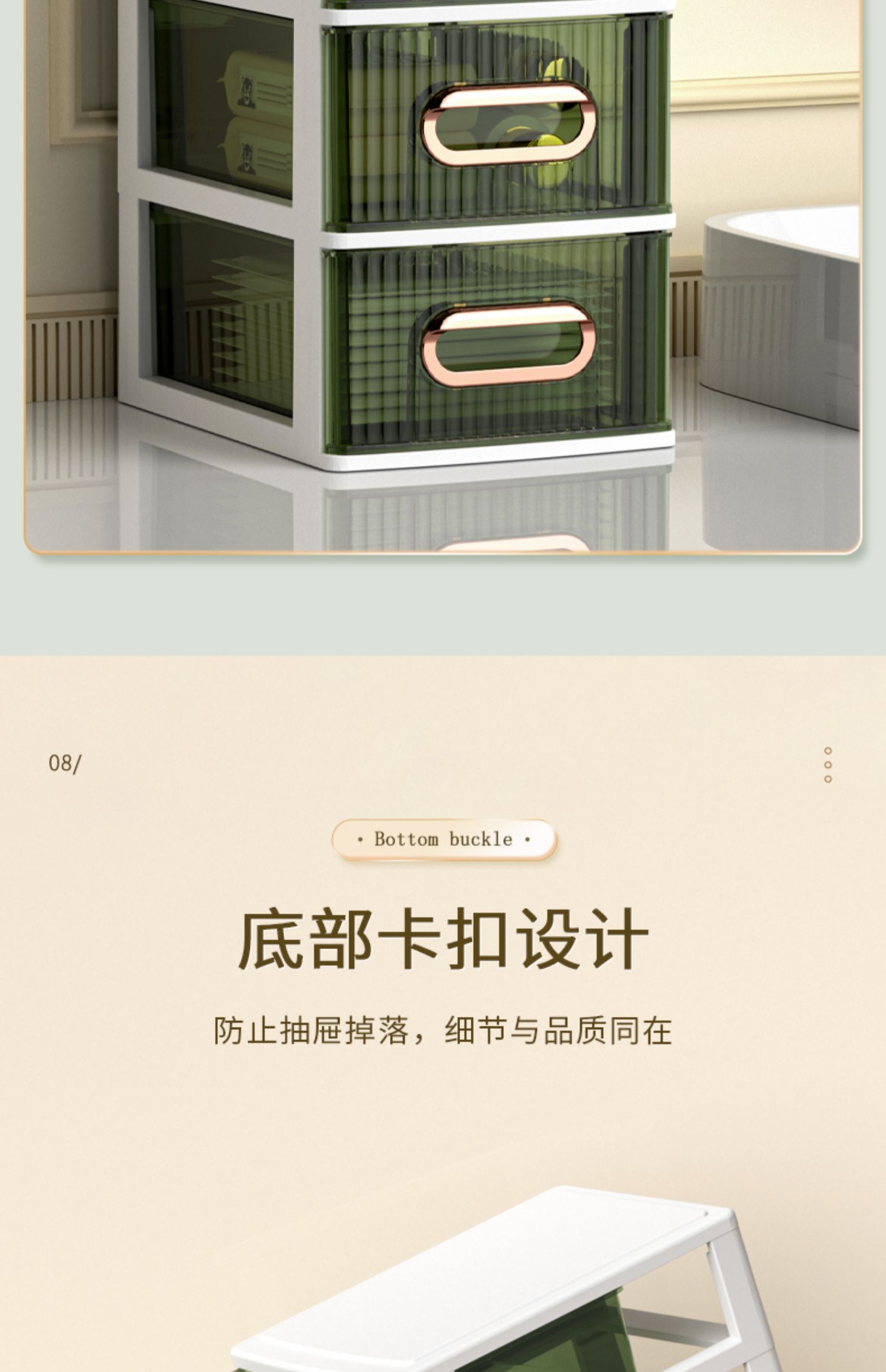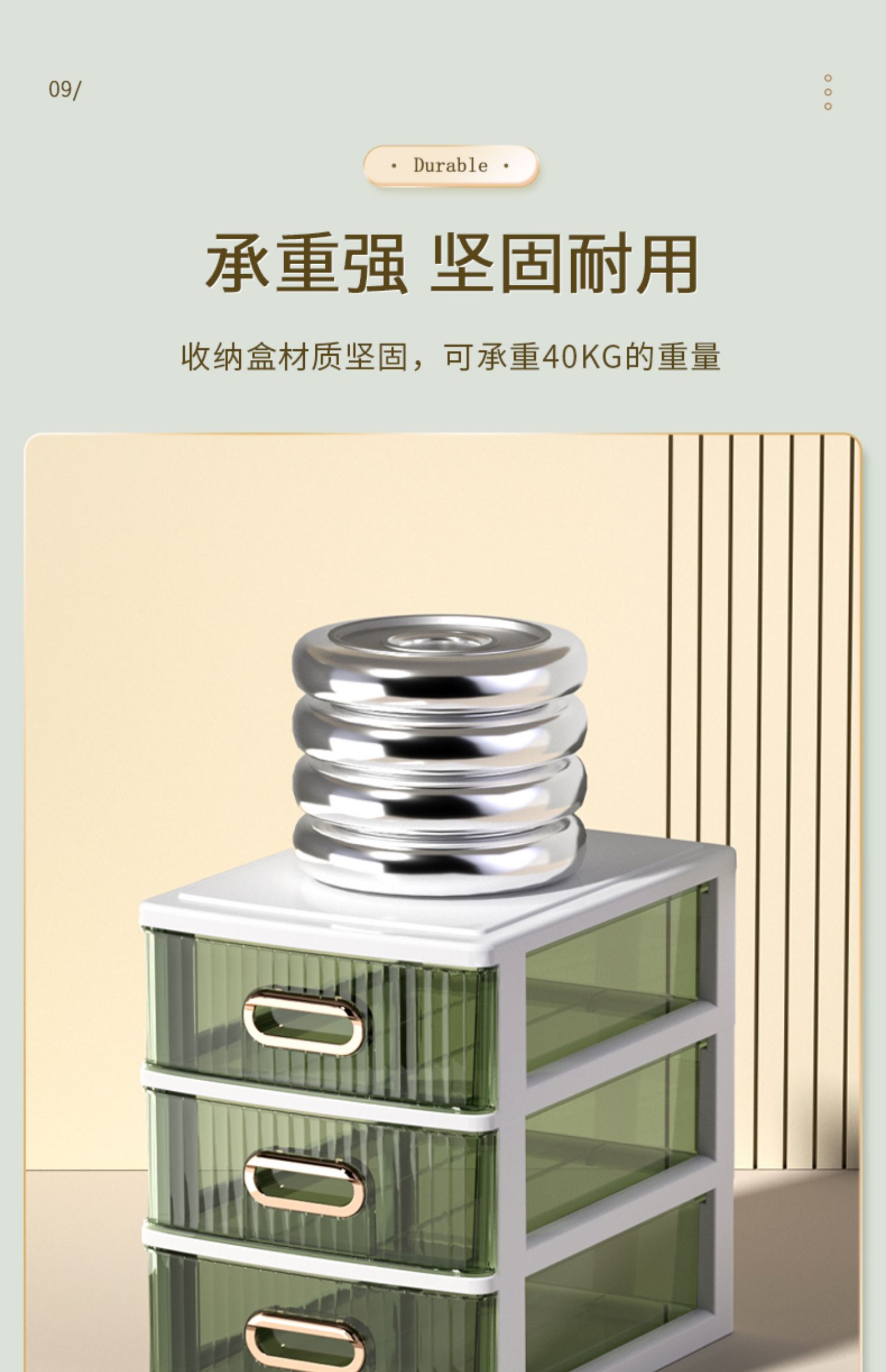 • 라이트 럭셔리 그린 4단 [가로 약 25면, A4용지 수납 가능] ♜ ♢