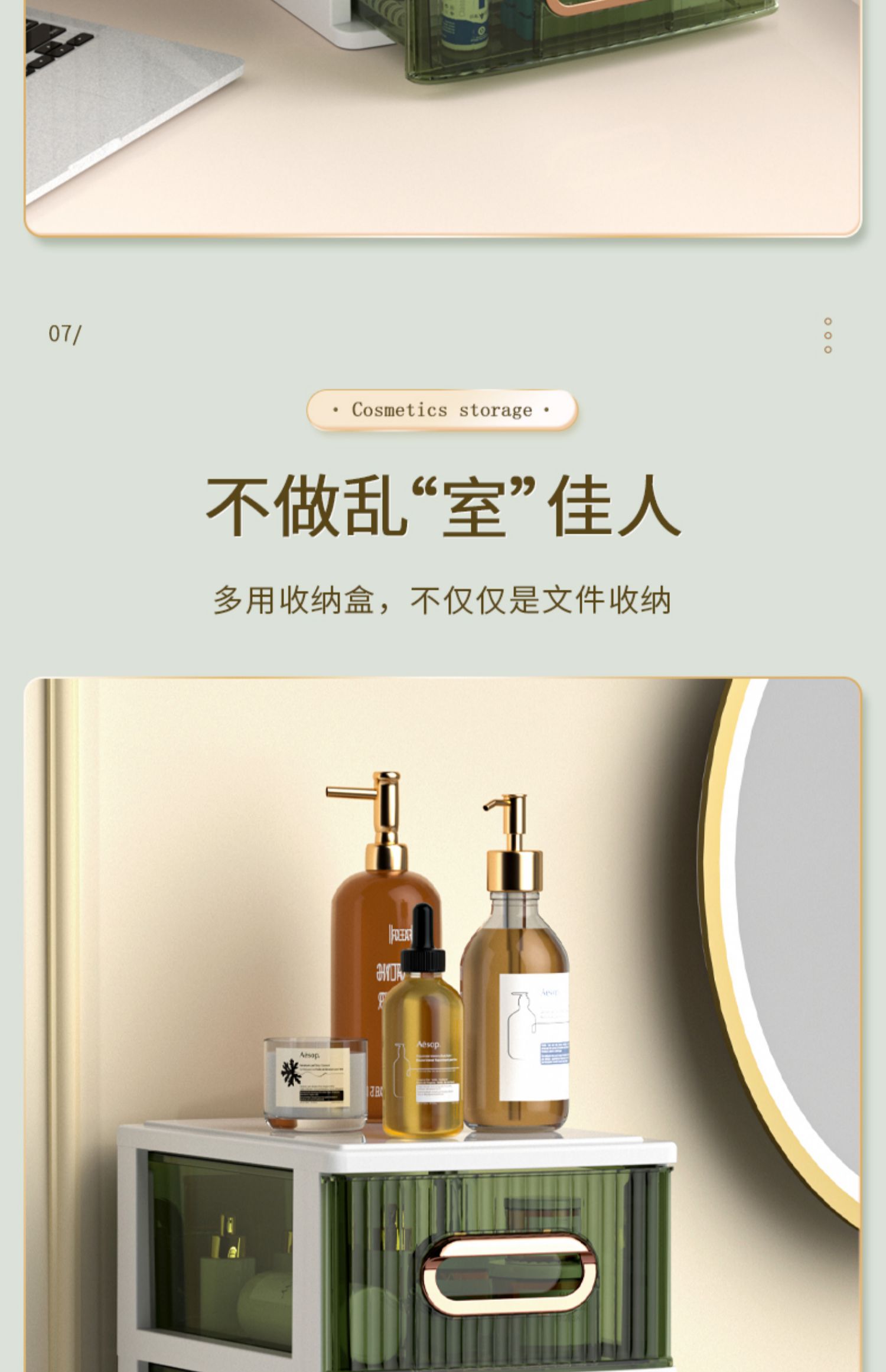 • 라이트 럭셔리 그린 3단 [가로 약 25면, A4용지 수납 가능]♜♢