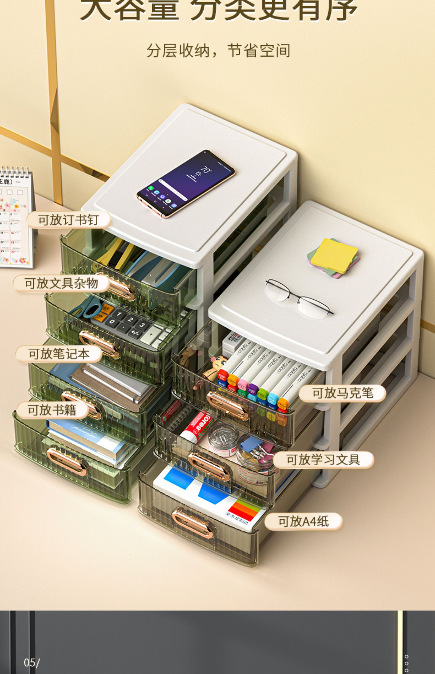 • 라이트 럭셔리 그린 2층 [가로 25면 가까이, A4용지 수납 가능]♜♢