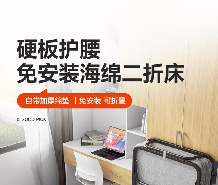 점심시간용 접이식 침대, 1인용 사무실 금속 안락의자, 두꺼운 가정용 80% off 보호용 간이침대, 점심시간용 접이식 침대
