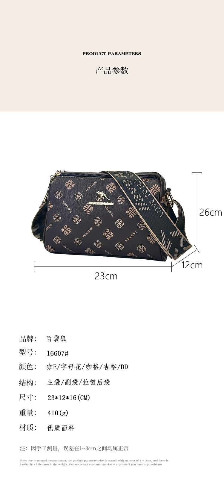 Qianzi Fox 새로운 패션 캥거루 인쇄 베개 가방 하이 엔드 센스 대용량 유행 올 매치 싱글 숄더 크로스 바디 여성용 가방스토어 가기