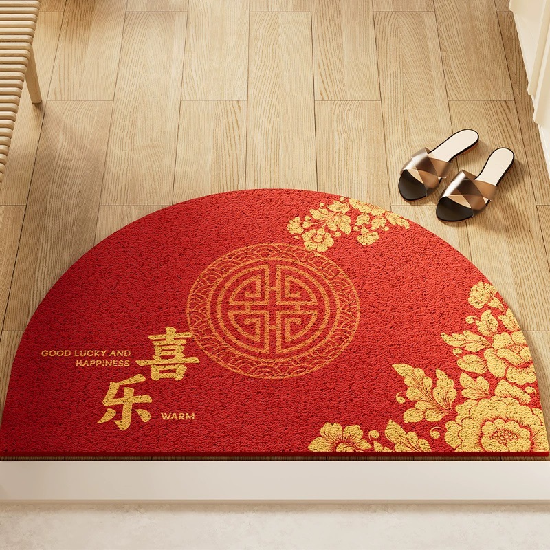 입구 매트 높은 수준의 새해 붉은 축제 집들이 토양 입구 매트 먼지 방지 미끄럼 방지 실크 링 바닥 매트