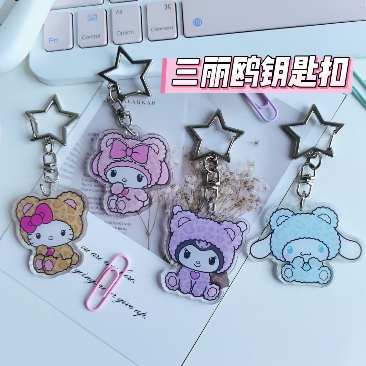 새로운 창조적 인 만화 산리오 유구이 개 메르 티 아크릴 키 체인 생일 선물 여성 귀여운 펜던트스토어 가기