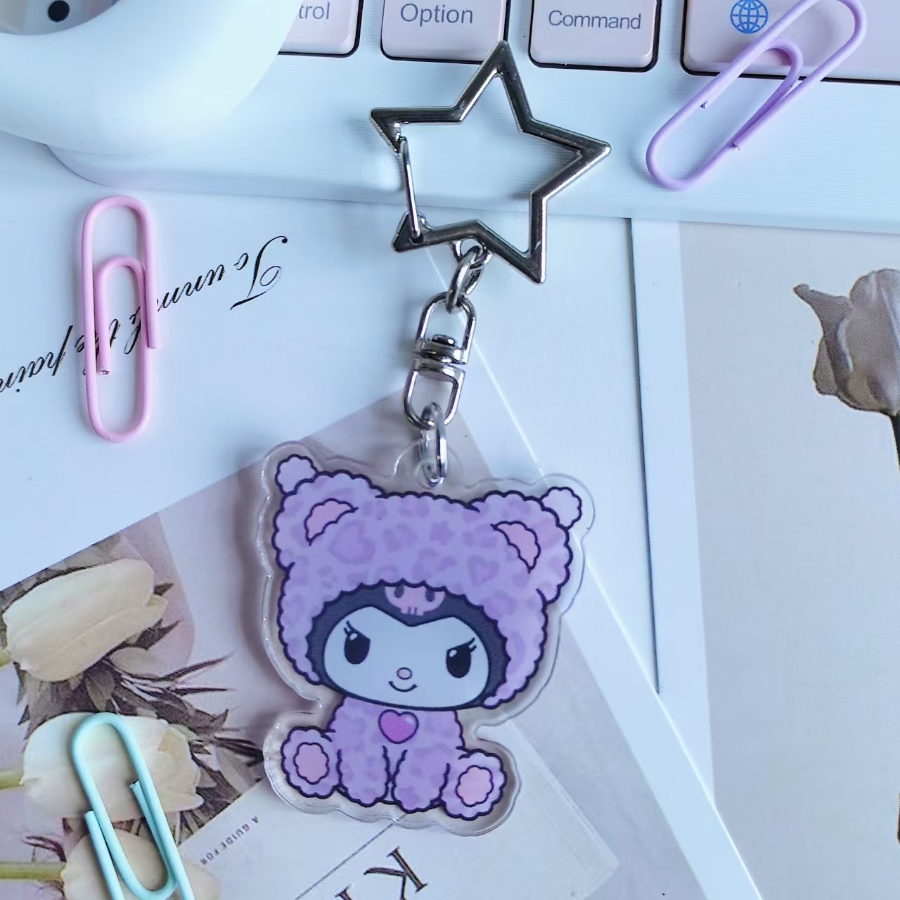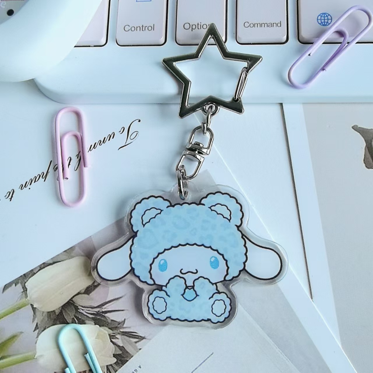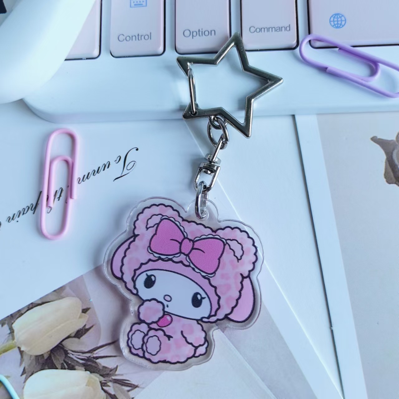 새로운 창조적 인 만화 산리오 유구이 개 메르 티 아크릴 키 체인 생일 선물 여성 귀여운 펜던트