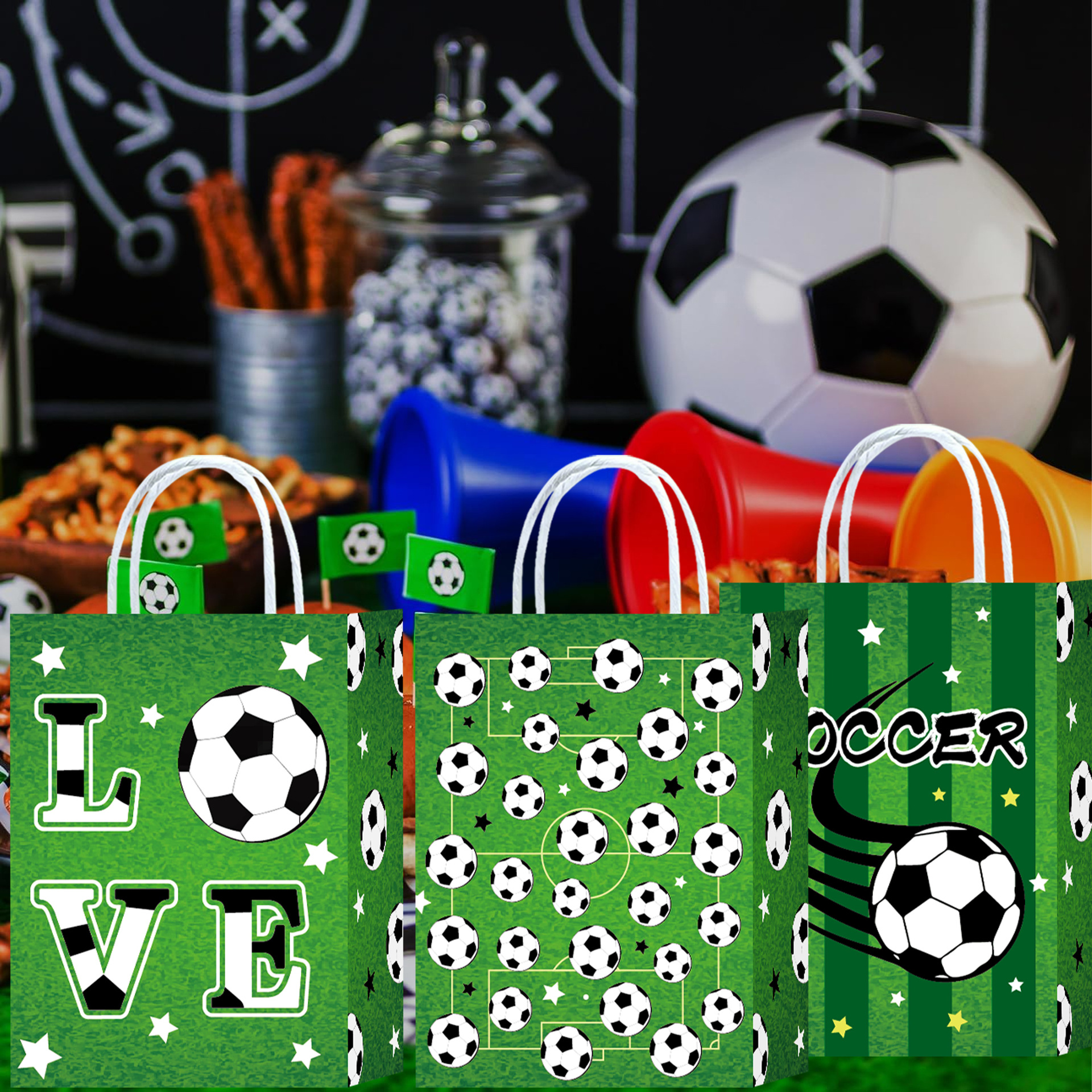 축구 핸드백의 주요 요소, 파티 축구 패턴 선물 가방, 스포츠 스타일 쇼핑 음료수, 대외 무역 종이 가방