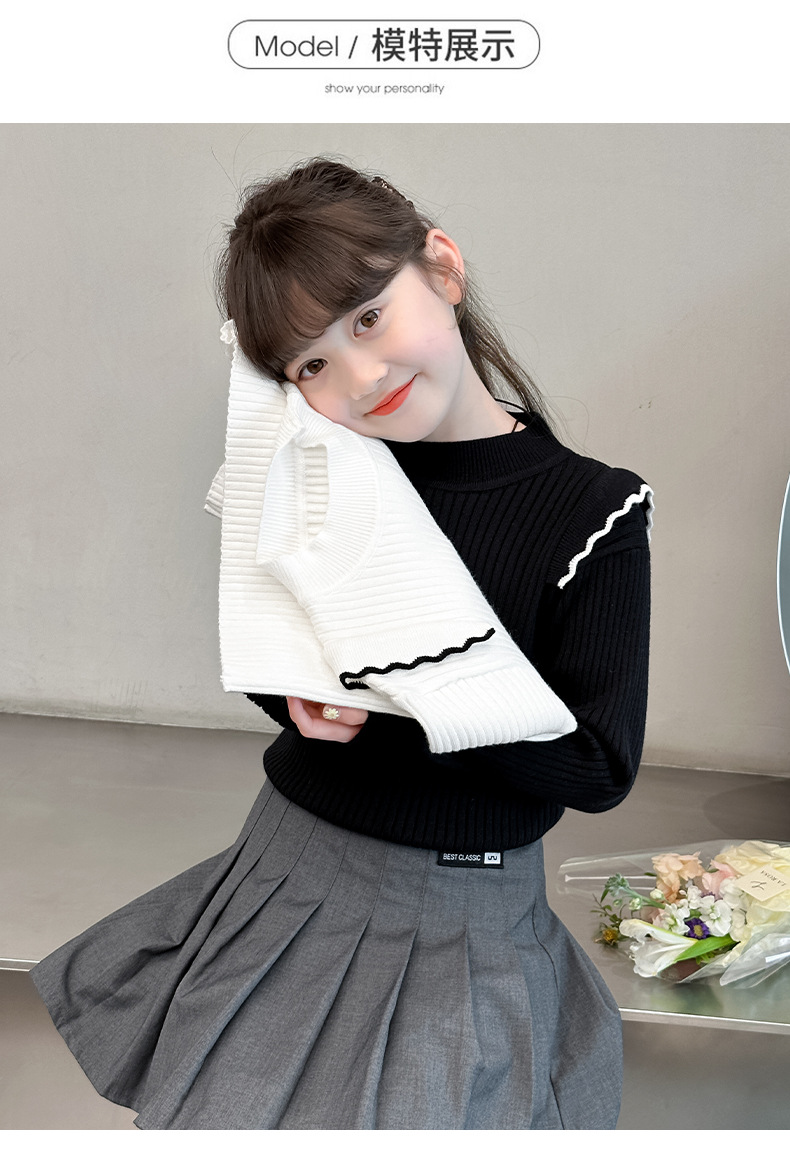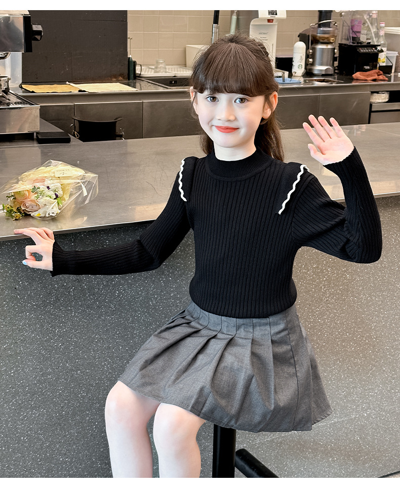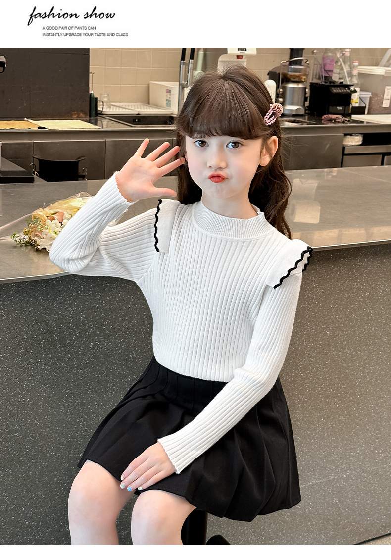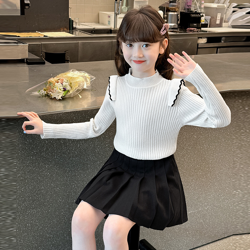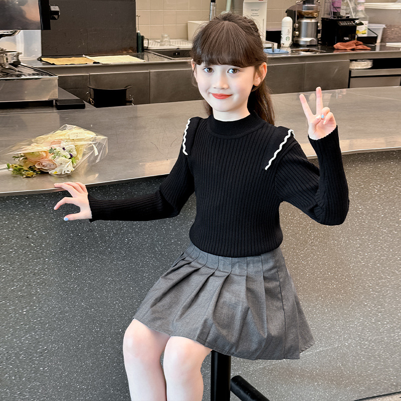 소녀들의 가을과 겨울 새로운 유행 올매치 베이스 셔츠 2024 중 큰 어린이 서양식 우드 이어 원피스 캐시미어 니트 스웨터