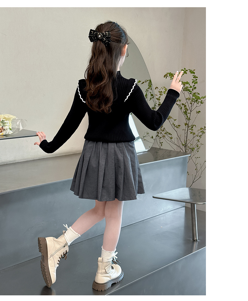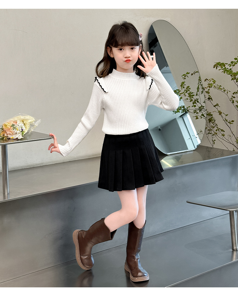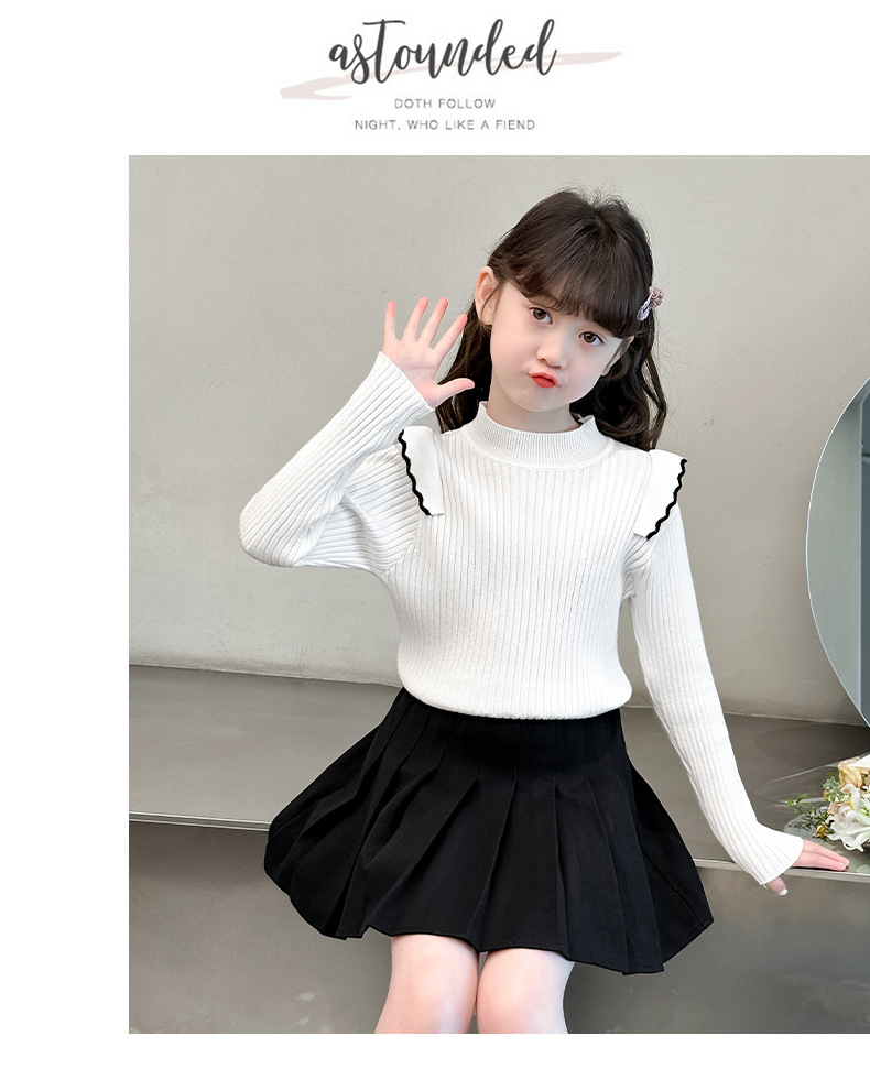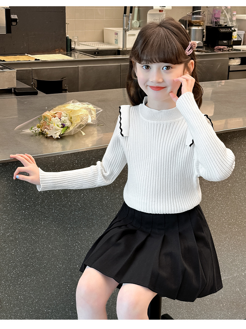 소녀들의 가을과 겨울 새로운 유행 올매치 베이스 셔츠 2024 중 큰 어린이 서양식 우드 이어 원피스 캐시미어 니트 스웨터