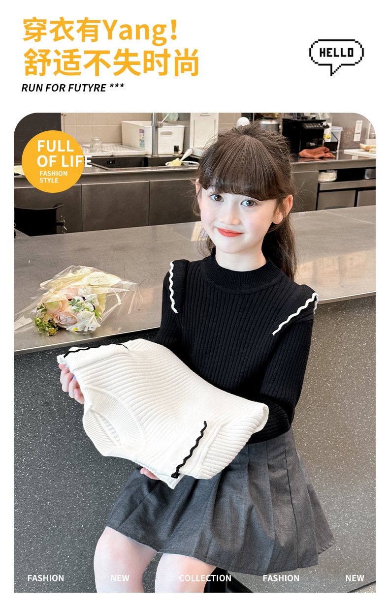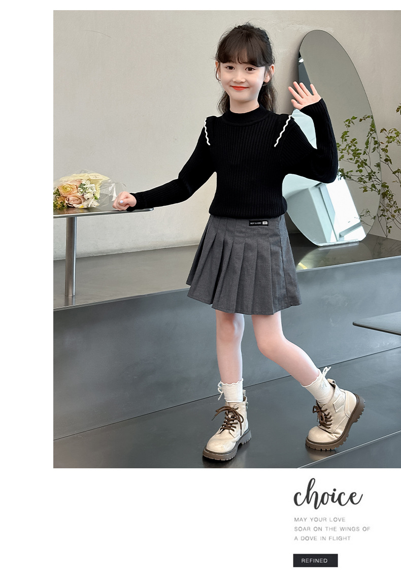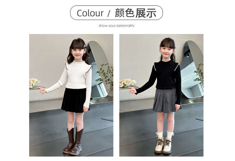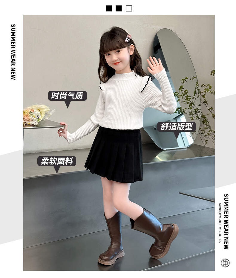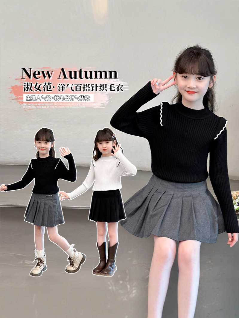 소녀들의 가을과 겨울 새로운 유행 올매치 베이스 셔츠 2024 중 큰 어린이 서양식 우드 이어 원피스 캐시미어 니트 스웨터스토어 가기