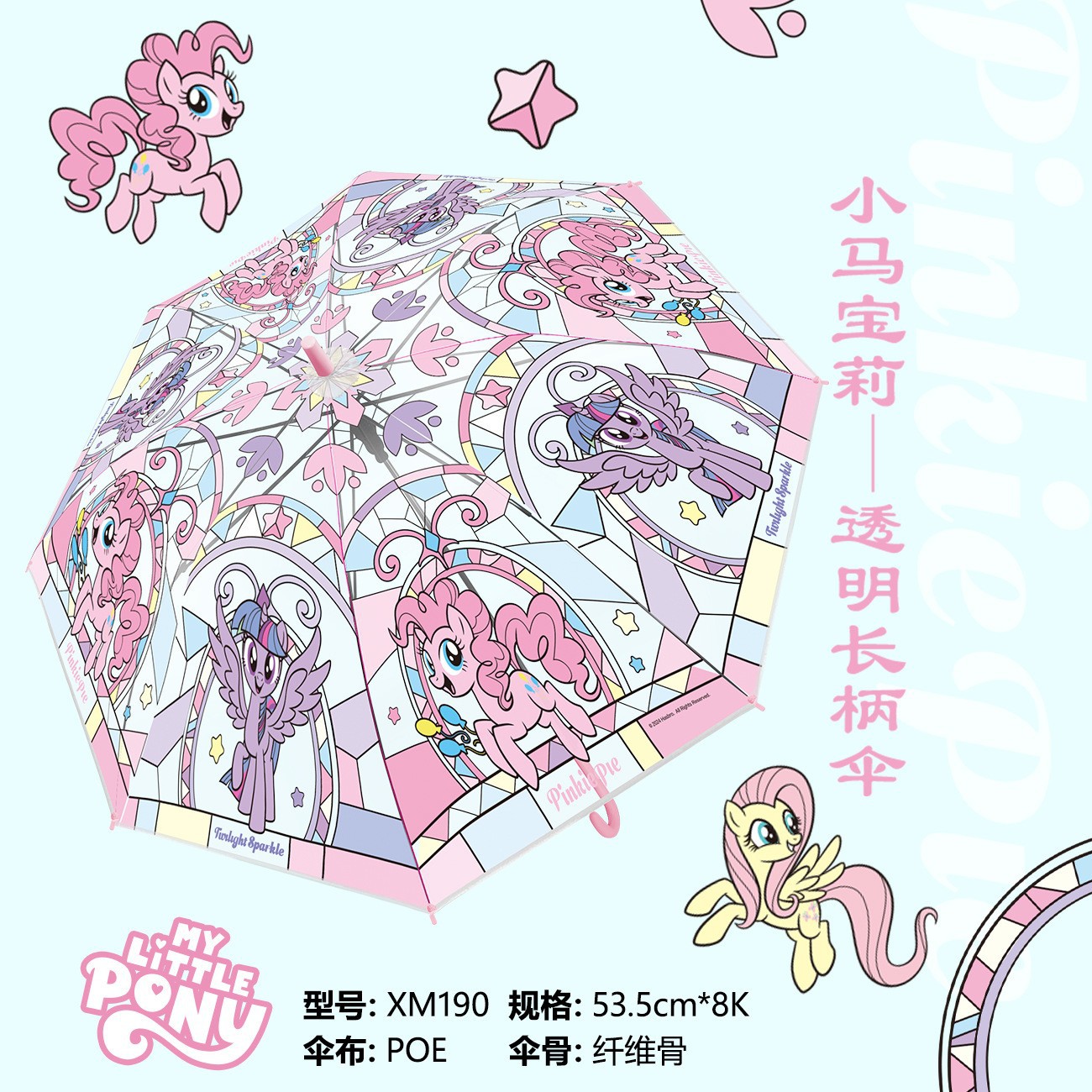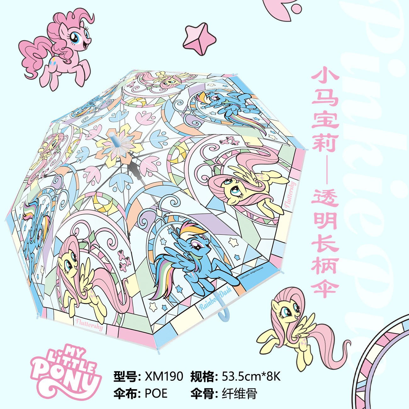 정품 마이 리틀 포니 우산 어린이 환경 친화적 인 우산 귀여운 만화 직선 긴 손잡이 자동 투명 우산