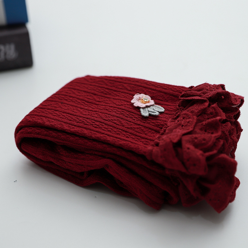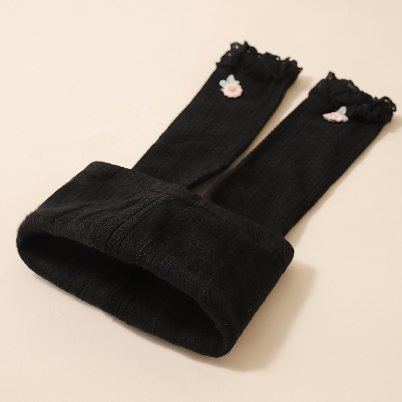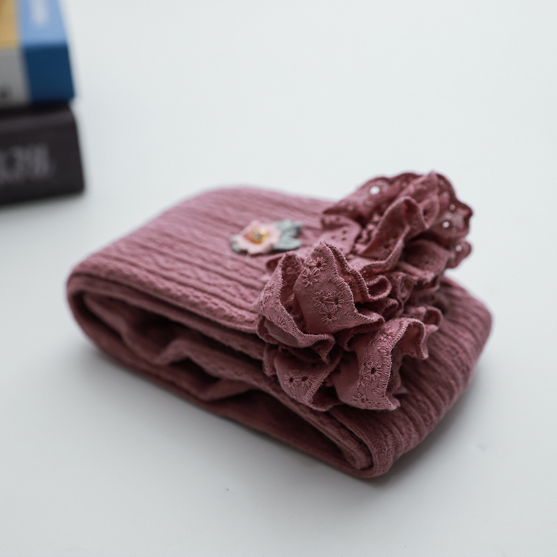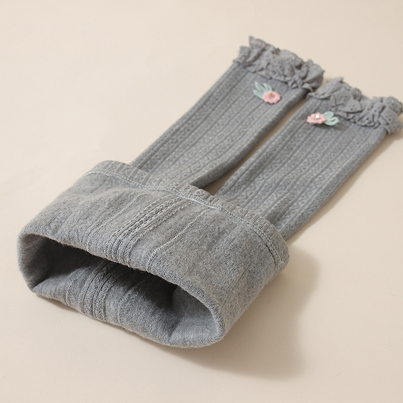 아기 소녀의 오프닝 레깅스 가을 겨울 기모 두꺼운 여자 따뜻한 바지 귀여운 레이스 자른 바지