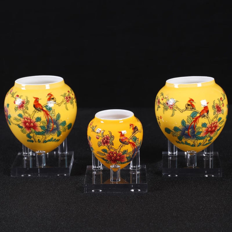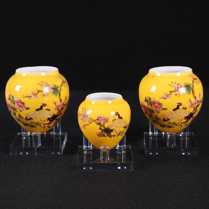 • JX 컵 노란색 바닥 크레인 접착 1.8 흑단 상감 페인팅 컵 손잡이