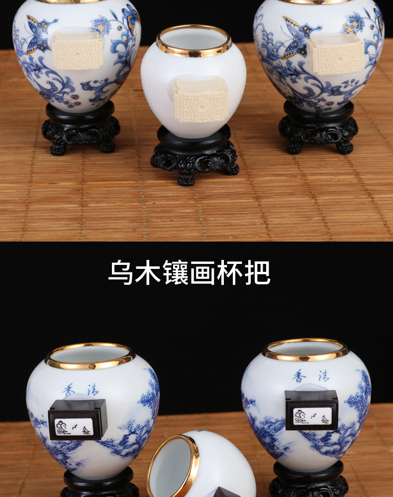 • JX 컵 깨진 도자기 크레인 접착 1.8 흑단 상감 쉘 컵 손잡이