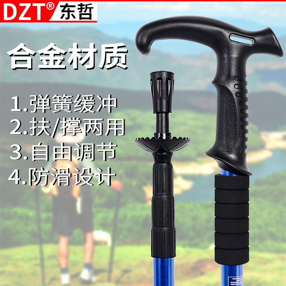 알파인 스틱 알루미늄 합금 편리한 망원경 스틱 충격 흡수 스트레이트 핸들 워킹 스틱 마운틴 클라이밍 장비 곡선 손잡이 미끄럼 방지 워킹 스틱