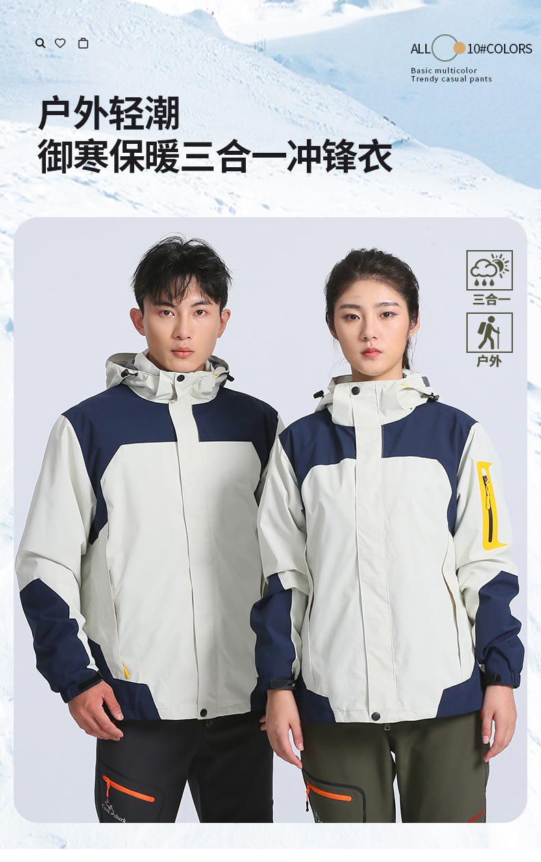 커플용 3-in-1 작업복, 야외 방풍 및 발수 기능, 맞춤형 투피스 세트, 따뜻한 여행 및 등산 재킷스토어 가기