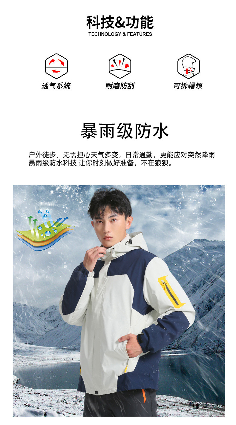 커플용 3-in-1 작업복, 야외 방풍 및 발수 기능, 맞춤형 투피스 세트, 따뜻한 여행 및 등산 재킷