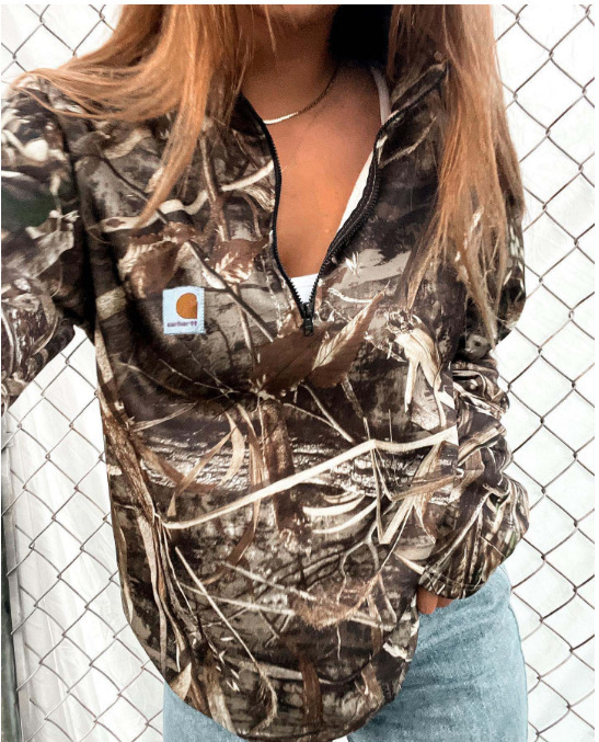 유럽과 미국의 2024 독립 역 인쇄 여성 지퍼 하프 하이 칼라 스웨터 탑스토어 가기
