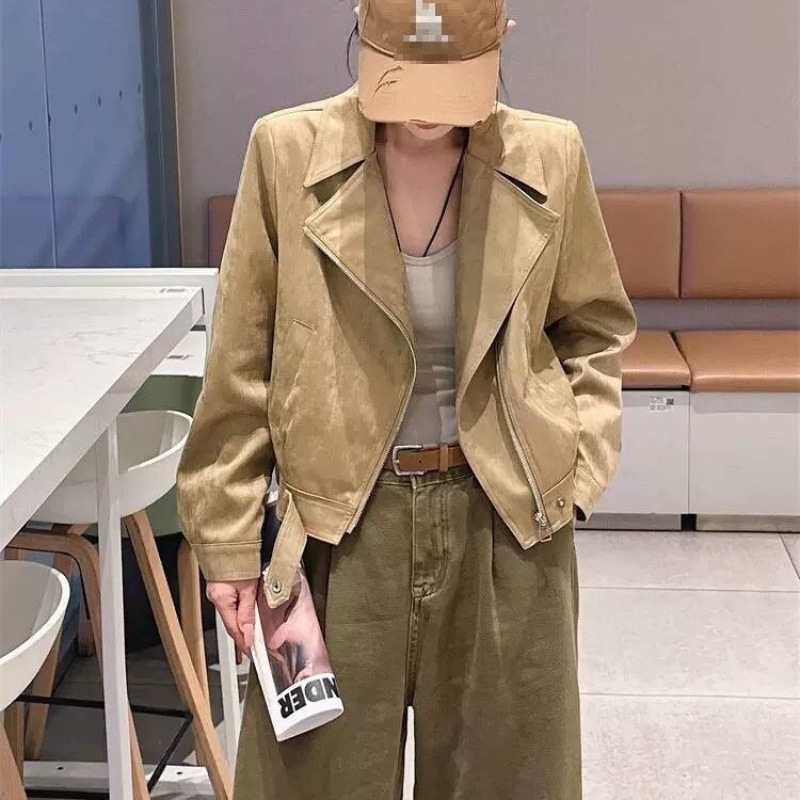 여성을위한 사슴 가죽 벨벳 재킷 가을 새로운 스타일 오토바이 재킷 여성을위한 작은 짧은 복고풍 재킷 탑스토어 가기