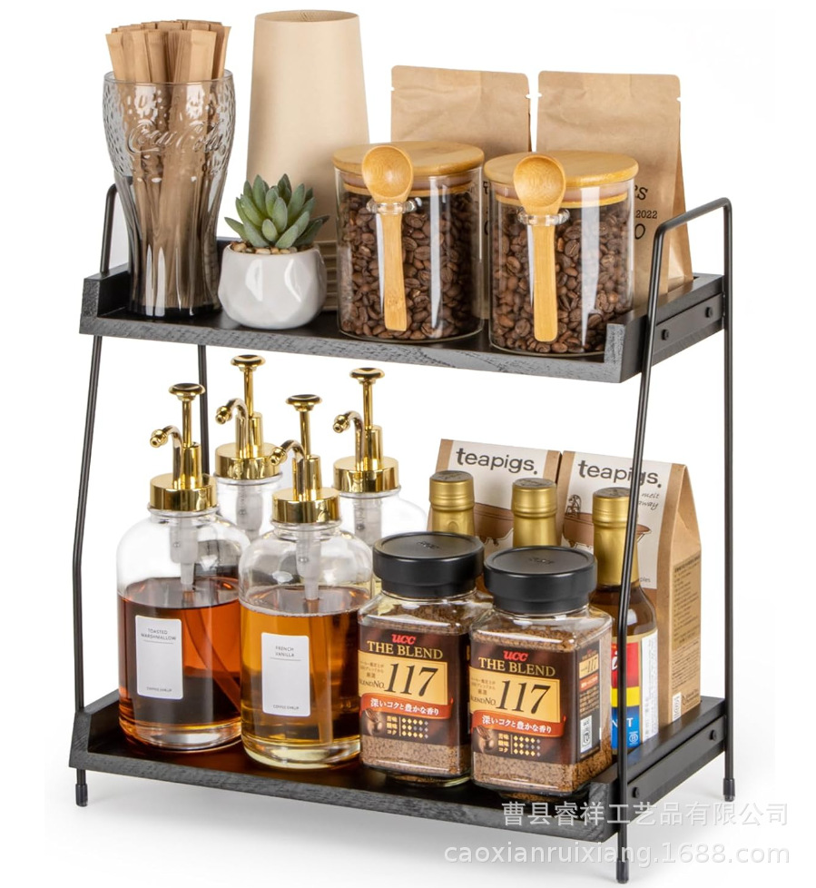 주방 조미료 용 재고 더블 레이어 나무 저장 랙 가정용 데스크탑 화장실 보관 랙