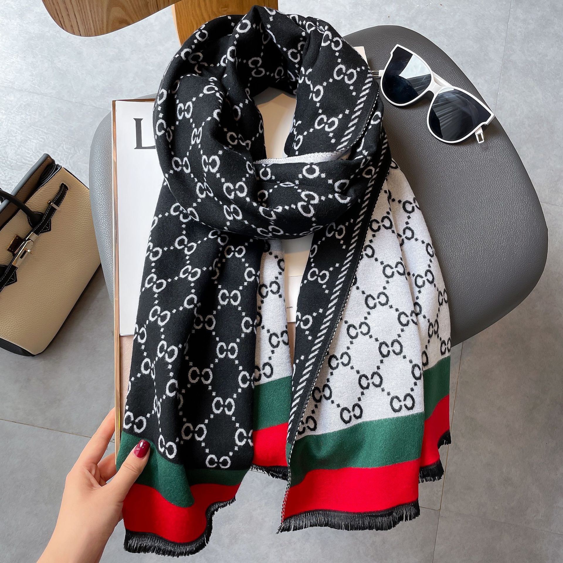 2024 가을과 겨울 유럽과 미국 모조 캐시미어 스카프 에어컨 룸 긴 외부 목도리 양면 따뜻한 스카프 도매스토어 가기