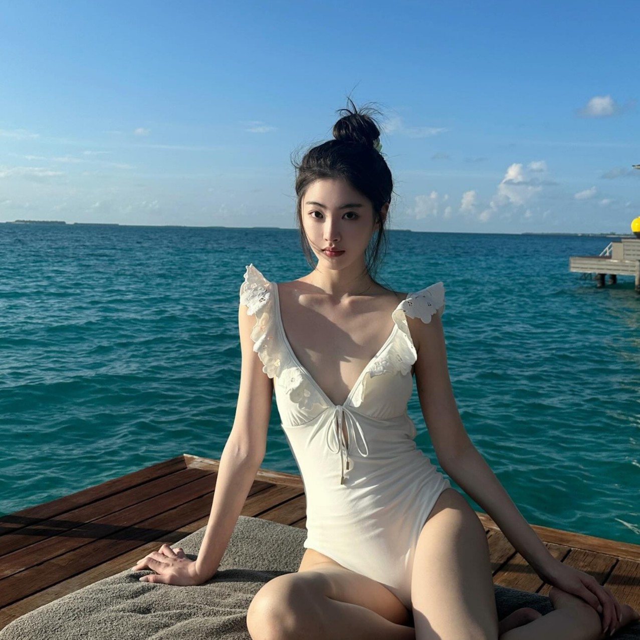 원피스 수영복 새로운 스타일 슬림 핏 일본 스타일 간단한 원피스 세트 러플 비키니 섹시 수영복스토어 가기