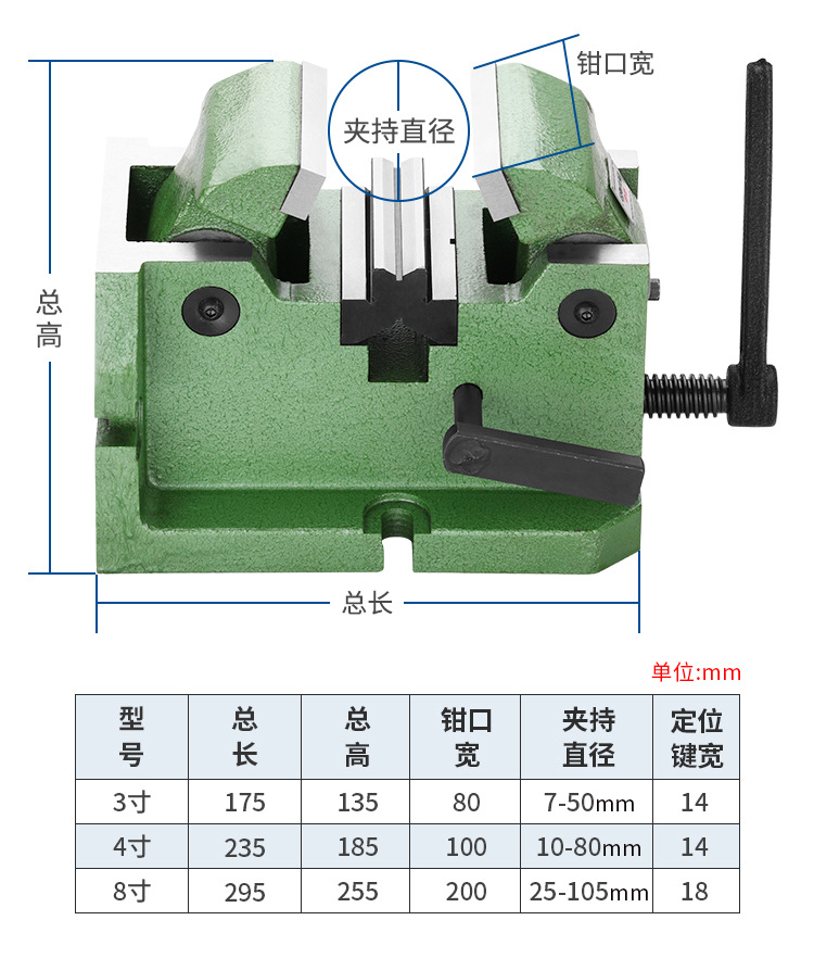 밀링 머신 클램핑 원형 관형 물체 원통형 바이스 3 인치 4 인치 8 인치 무거운 V 자형 플랫 입 펜치 용 Vise 펜치