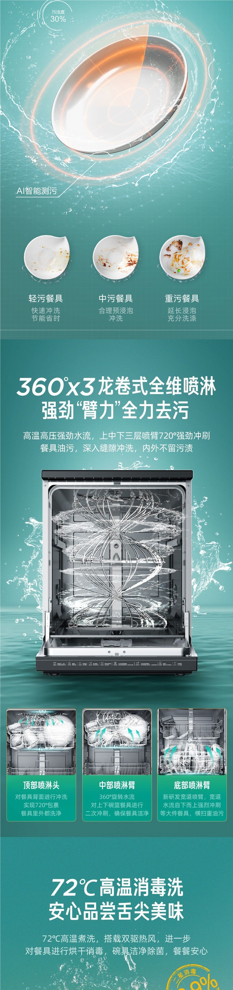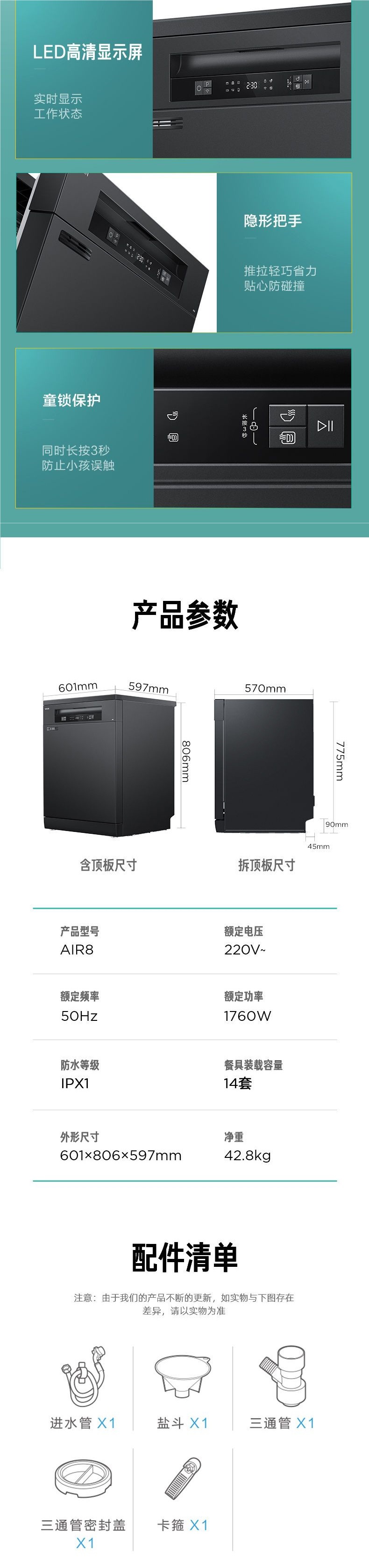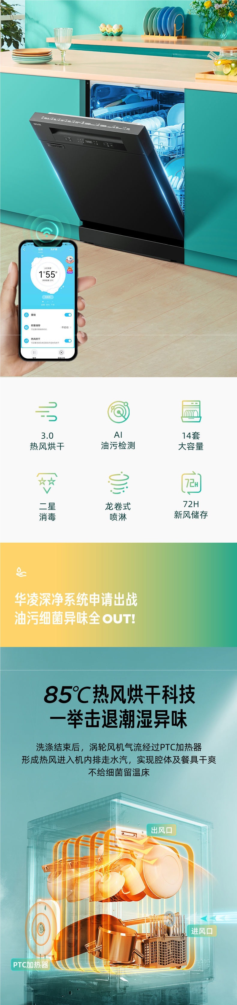 Midea의 Hualing 식기 세척기 Air8 뜨거운 공기 독립 건조 가구 14 세트 완전 자동 임베디드 인텔리전스