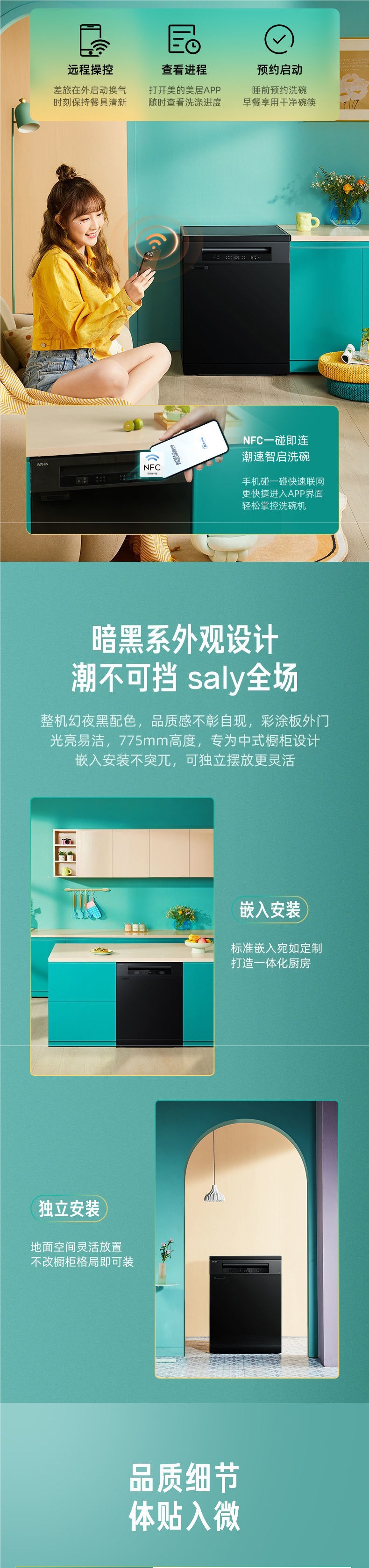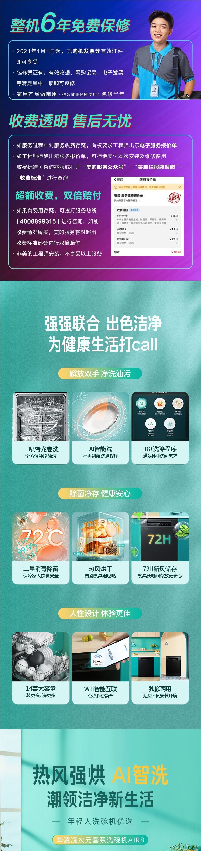 Midea의 Hualing 식기 세척기 Air8 뜨거운 공기 독립 건조 가구 14 세트 완전 자동 임베디드 인텔리전스스토어 가기