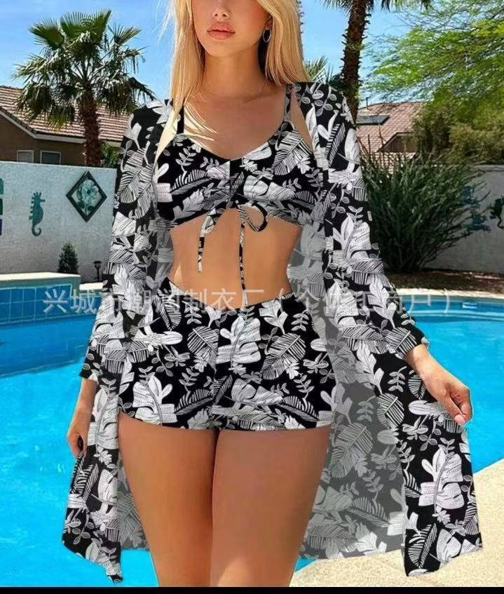 2025 수영복 여성 신작 대외 무역 수영복 비키니 3 피스 세트 아마존 핫 스타일 섹시한 프린트 복서 팬티스토어 가기
