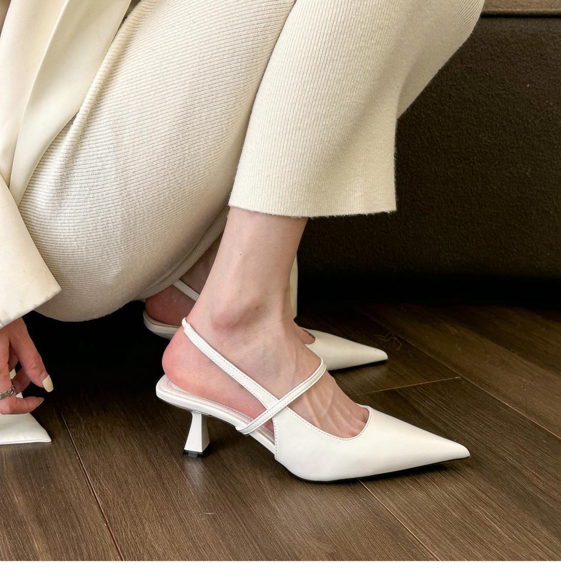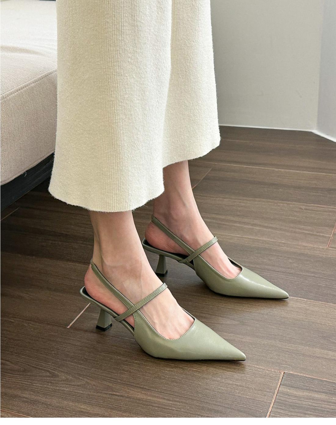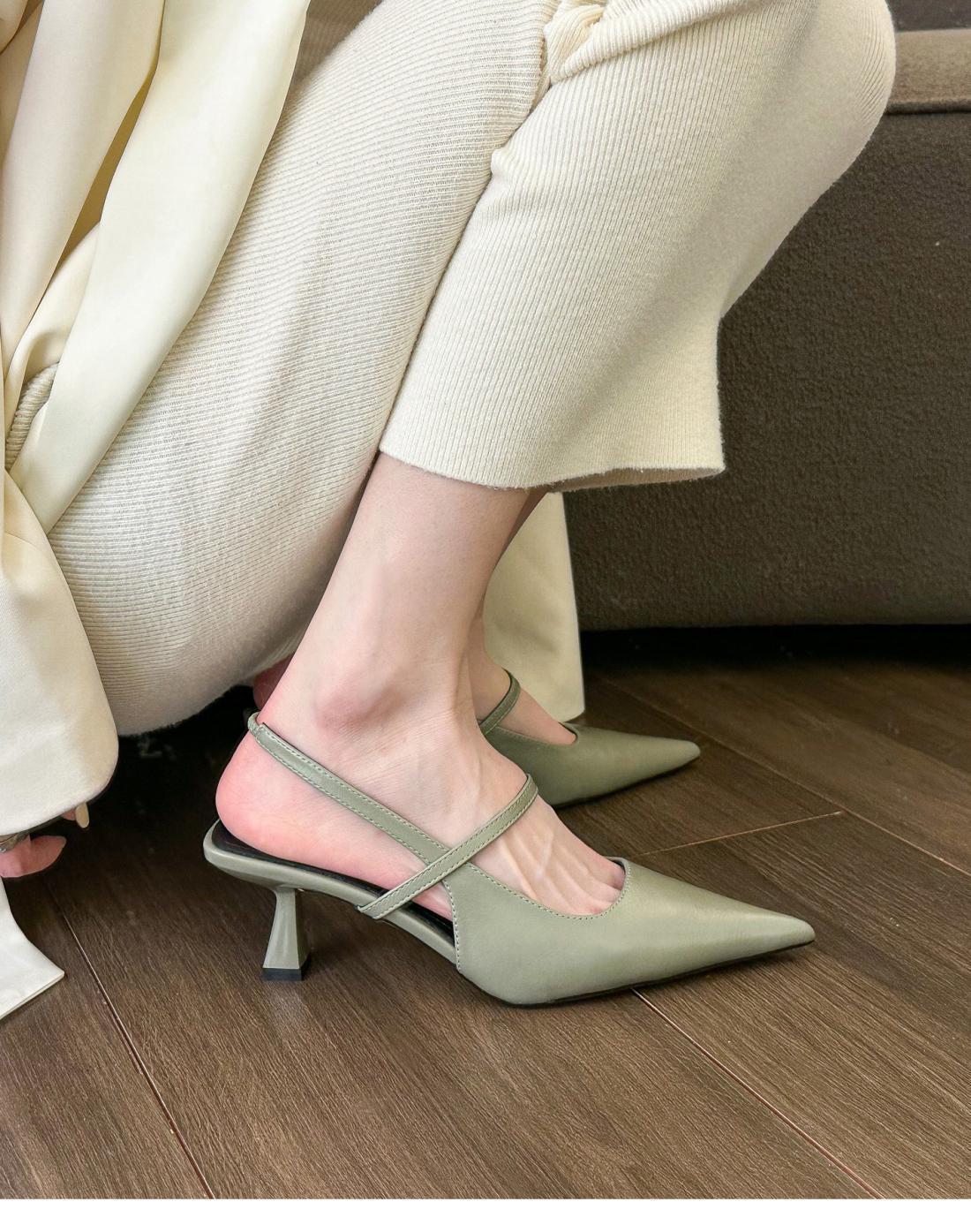틈새 우아한 배 녹색 뾰족한 발가락 Baotou 빈 여행 샌들 여자 2025 새로운 부드러운 올매치 하이힐 신발