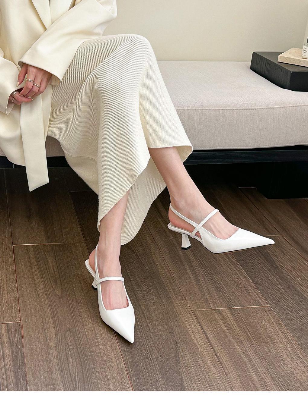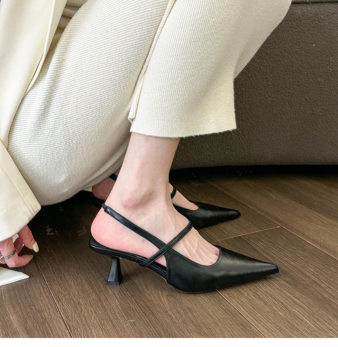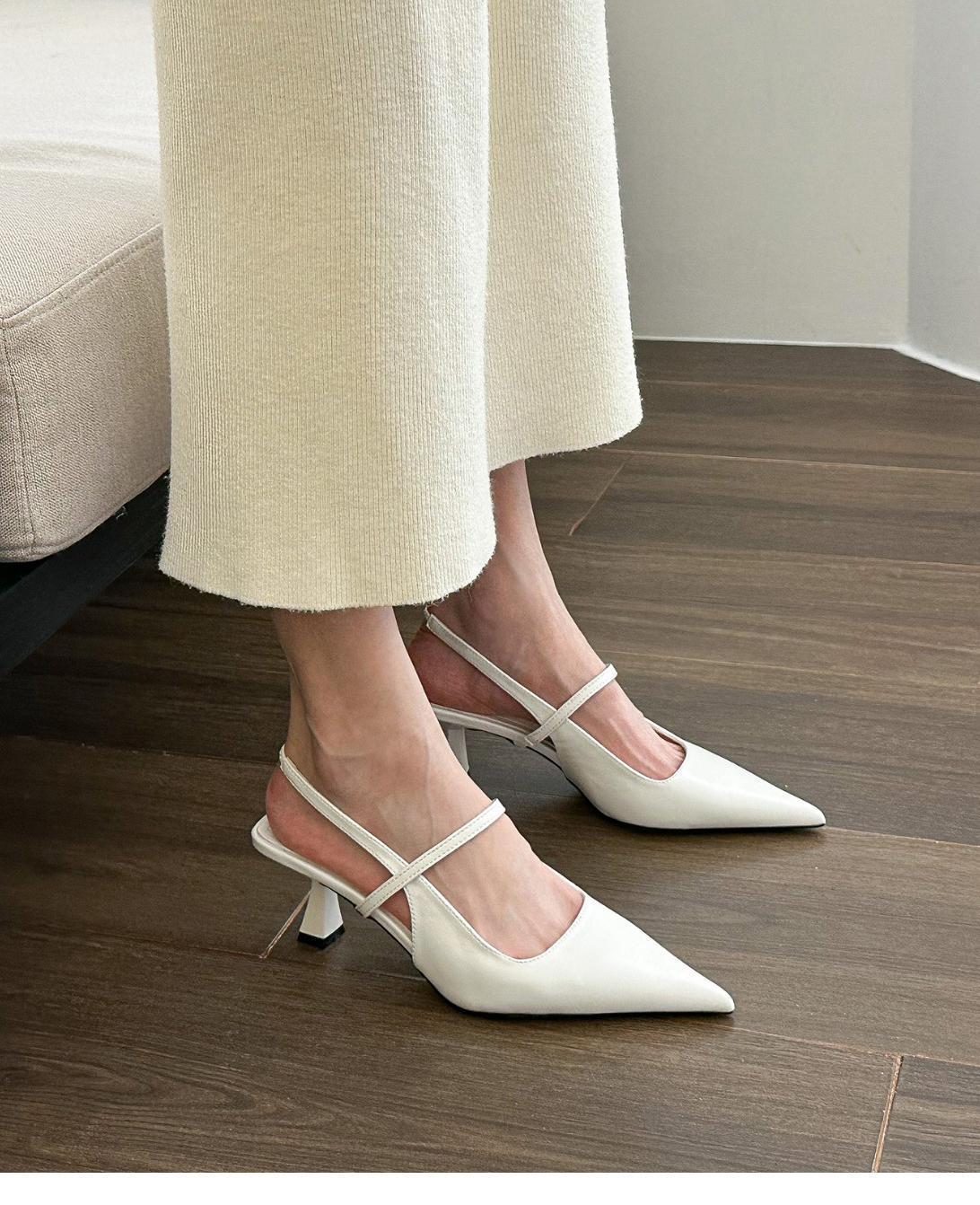틈새 우아한 배 녹색 뾰족한 발가락 Baotou 빈 여행 샌들 여자 2025 새로운 부드러운 올매치 하이힐 신발