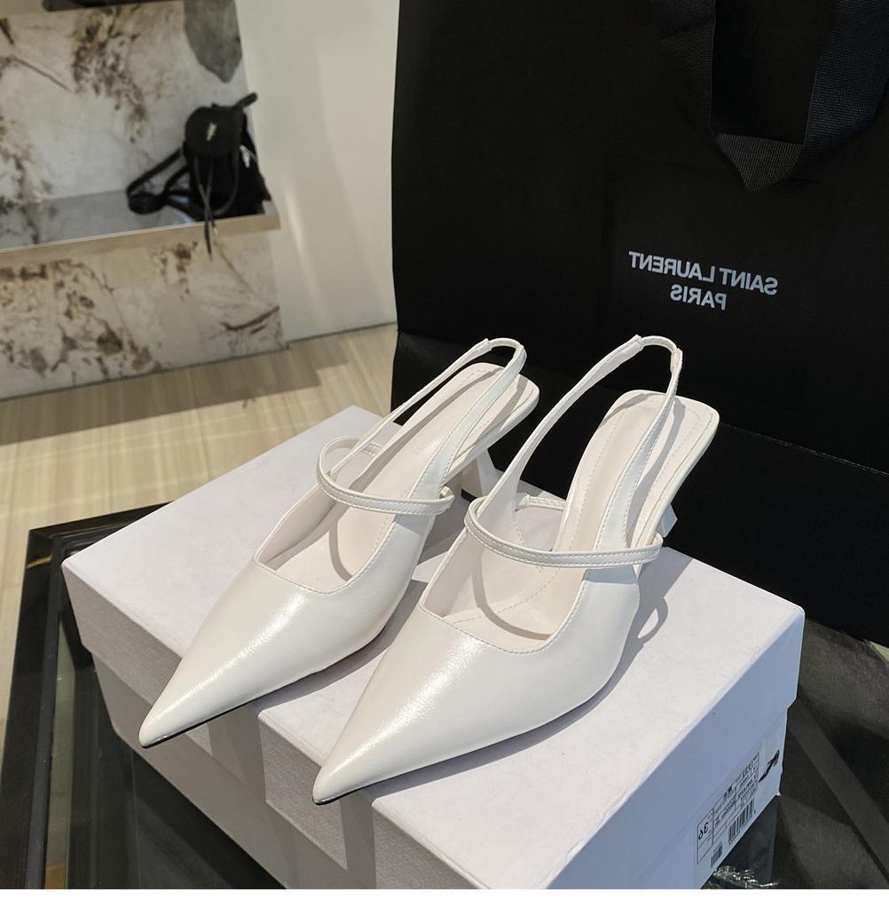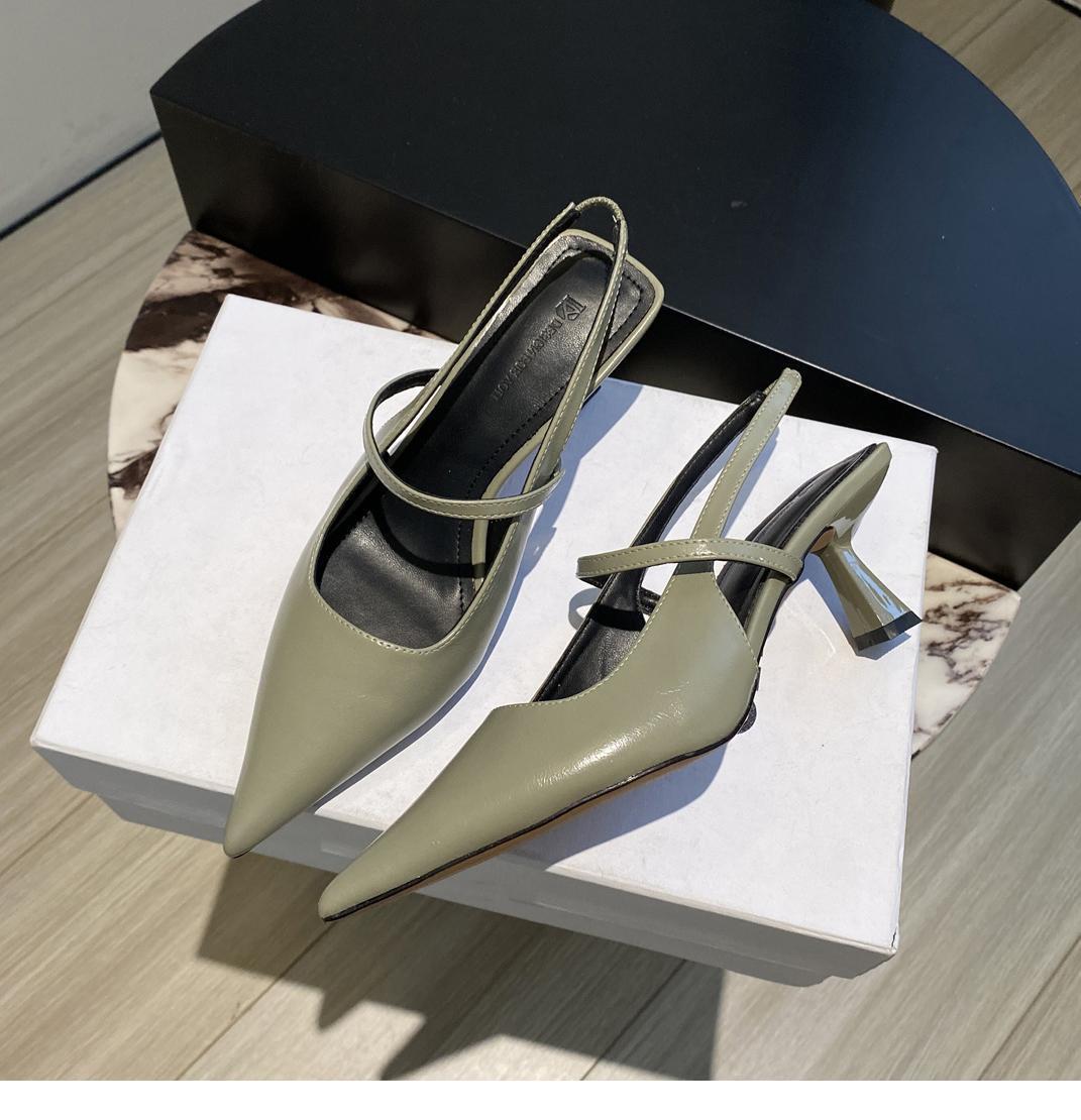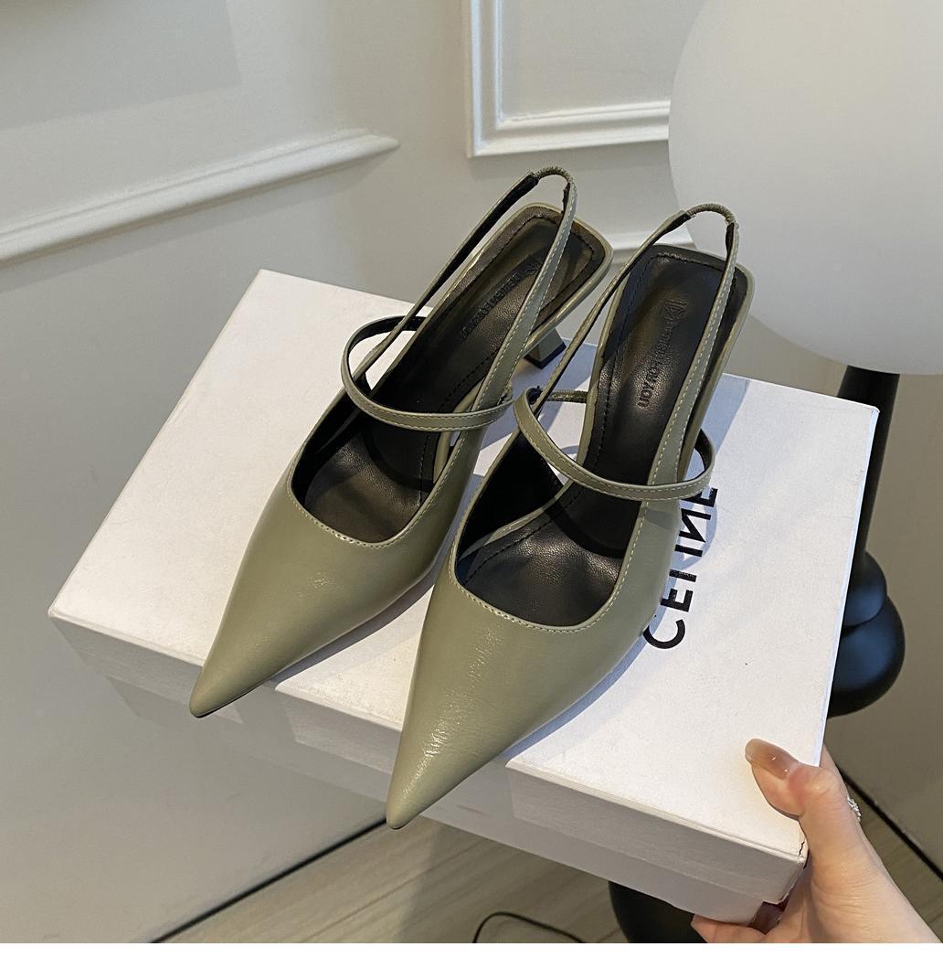 틈새 우아한 배 녹색 뾰족한 발가락 Baotou 빈 여행 샌들 여자 2025 새로운 부드러운 올매치 하이힐 신발스토어 가기
