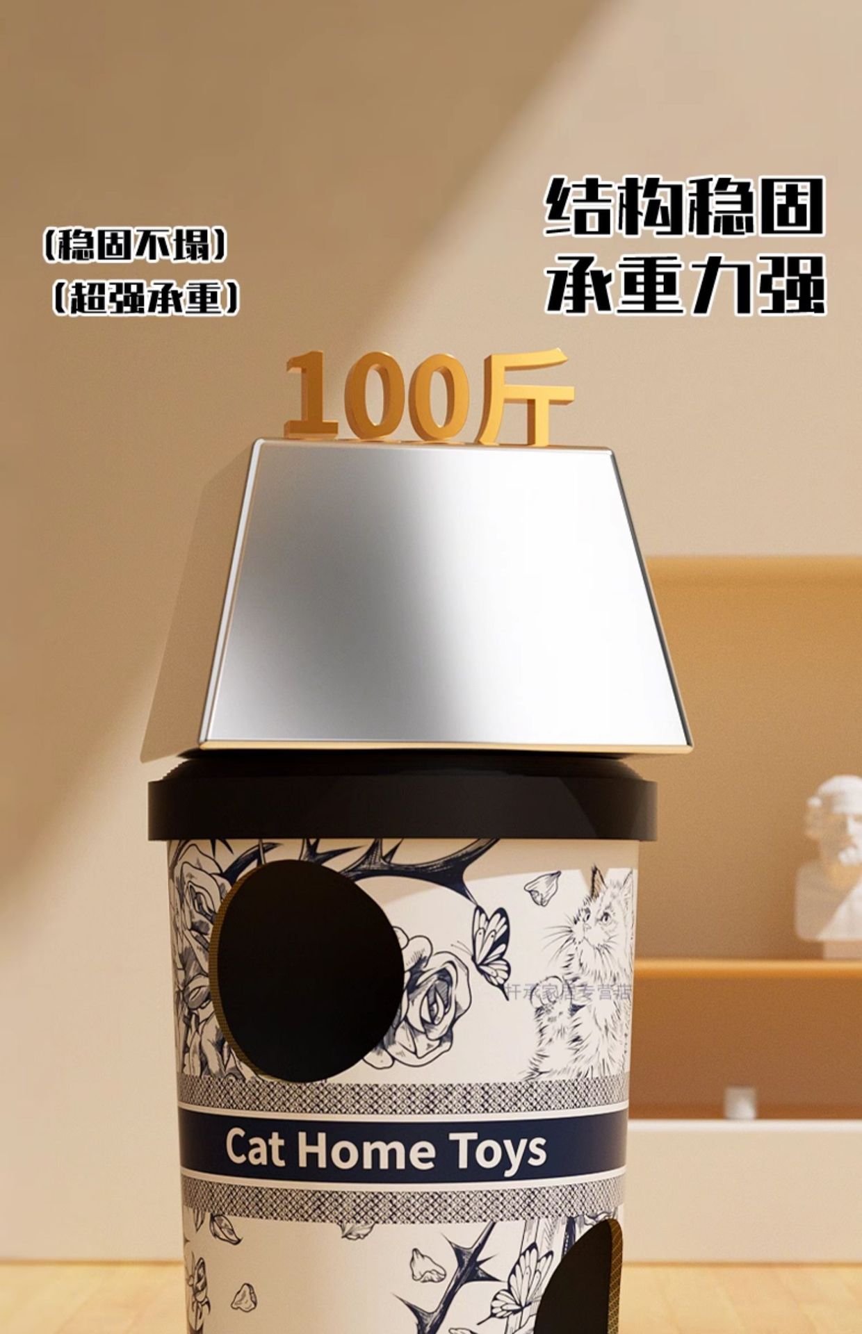 • 오버로드 야옹지 커피통 70cm [3단 고양이 긁는 기둥] (드릴, 숨바꼭질, 발톱 갈기, 수면용 다기능)