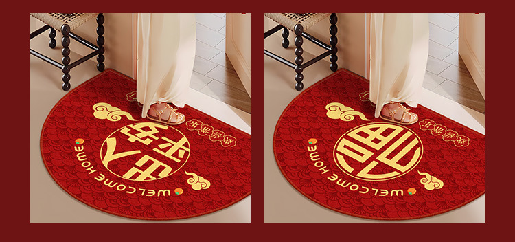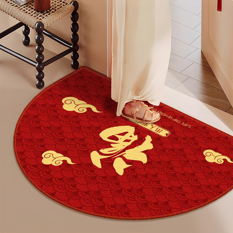 빨간 바닥 매트 입구 문 먼지 방지 문 바닥 매트 고급 감각 반원형 입구 문 미끄럼 방지 매트 머리카락 세대스토어 가기
