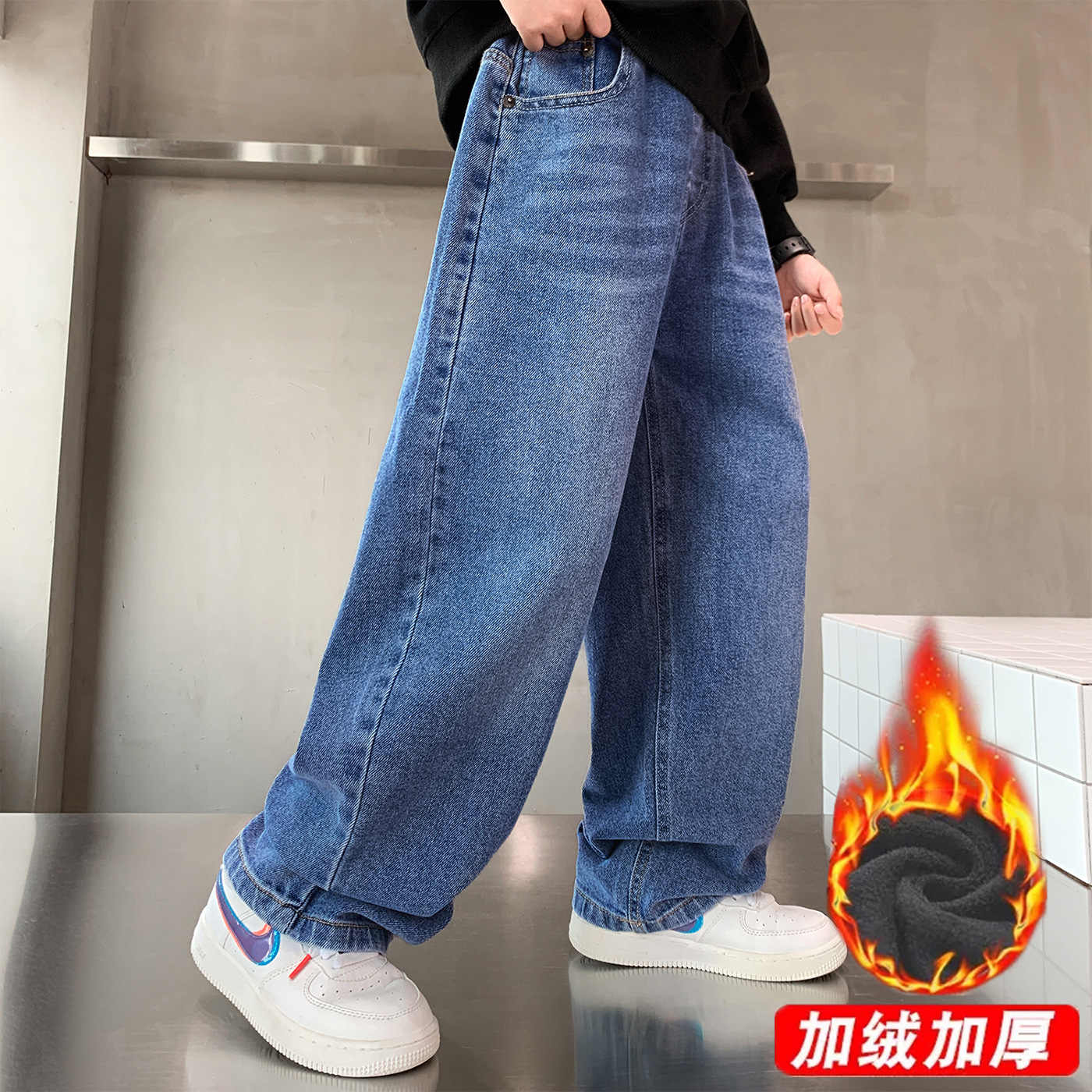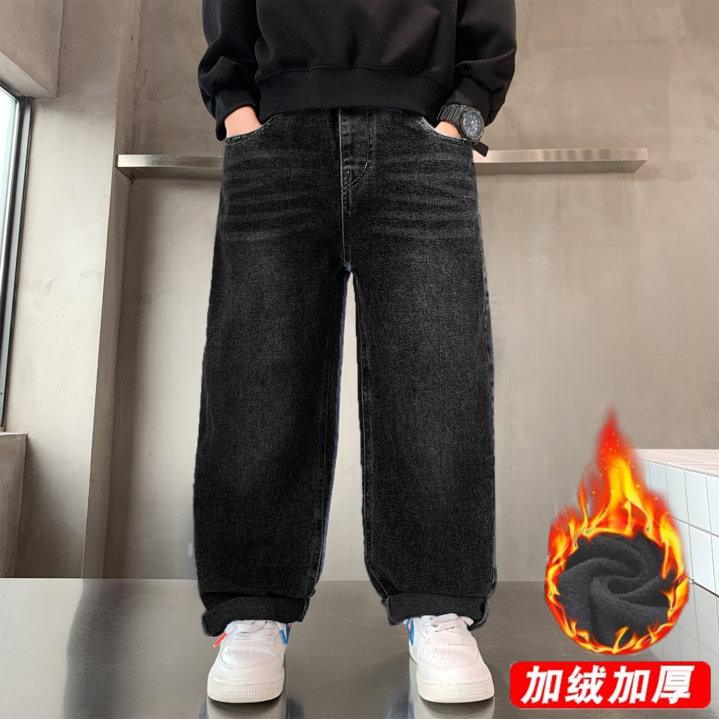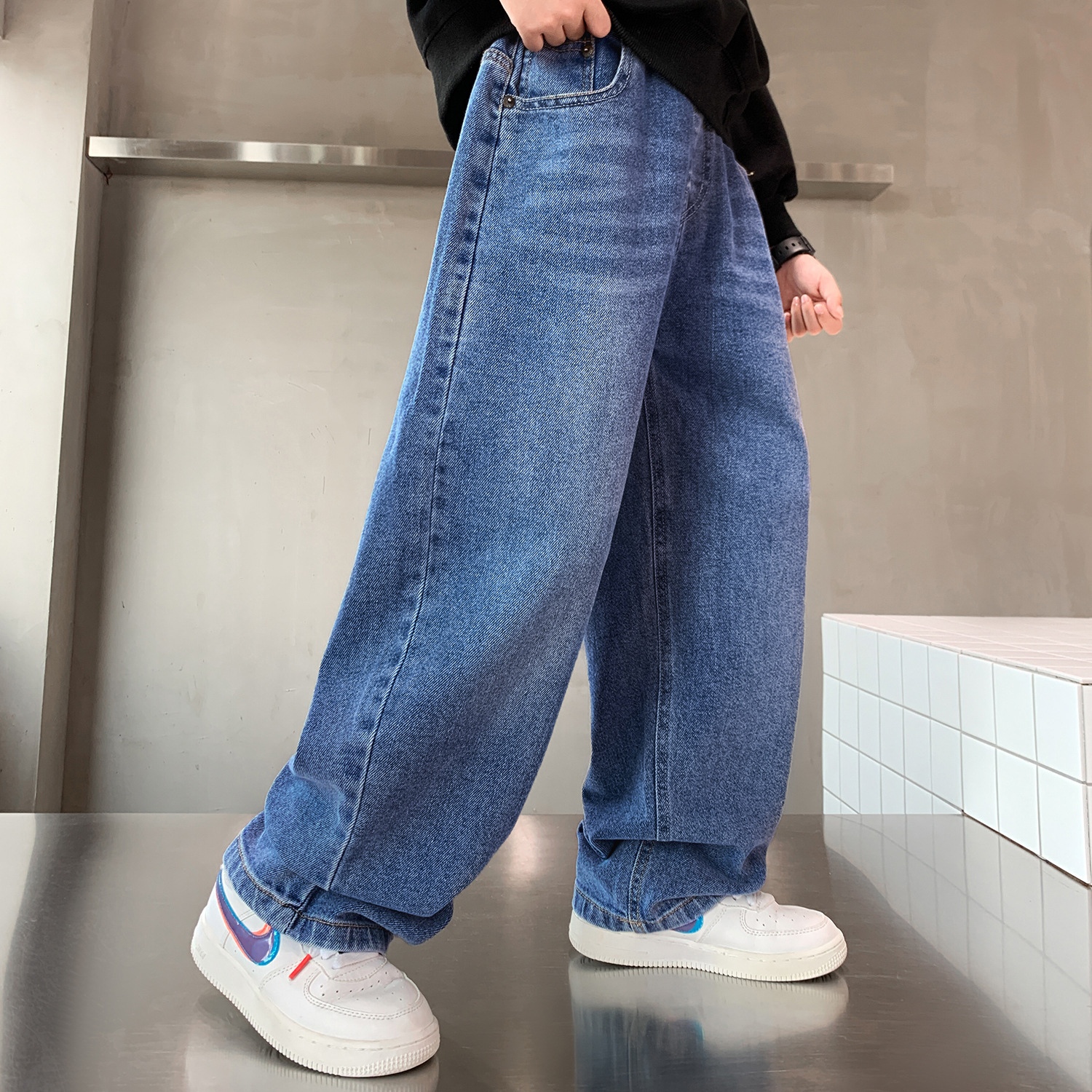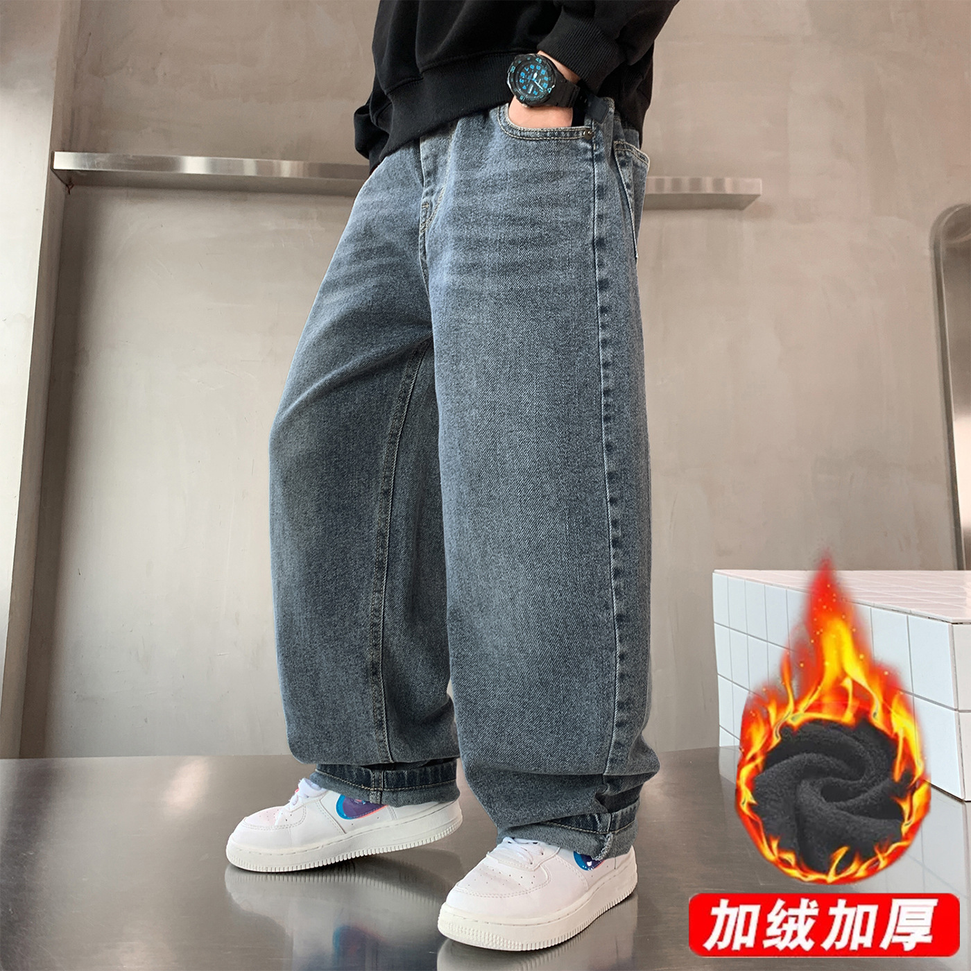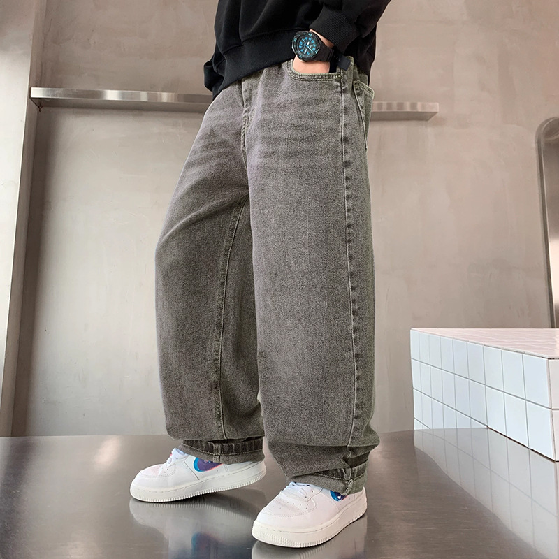 남아 청바지 2026 신상 봄 가을 와이드 레그 아동 남아 의류 롱 팬츠 멋진 청소년 캐주얼 바지스토어 가기
