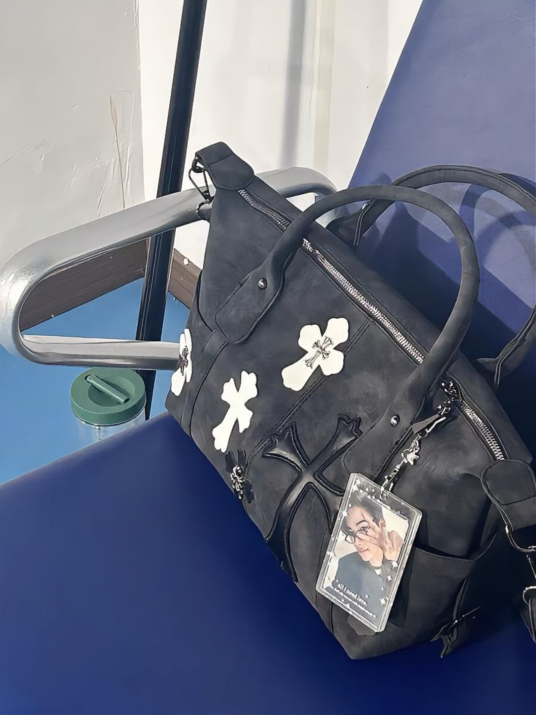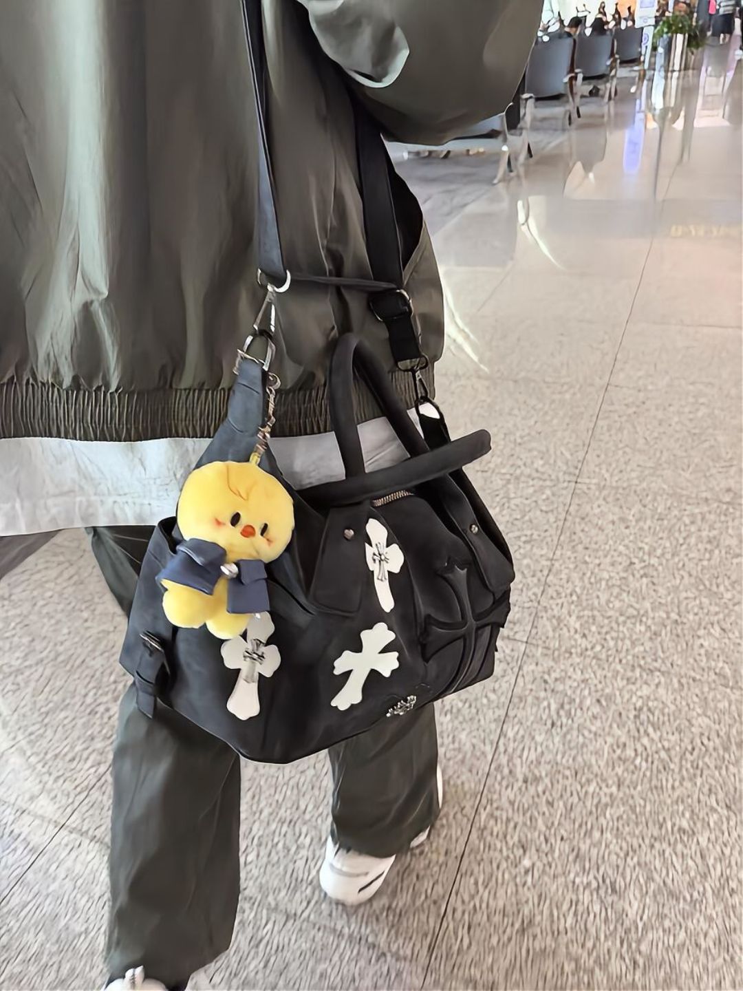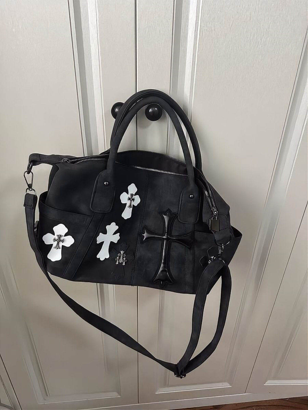 트렌디 한 쿨 하이 컬러 값 흑백 패치 워크 여행 가방 로마 금속 크로스 숄더 크로스 바디 백