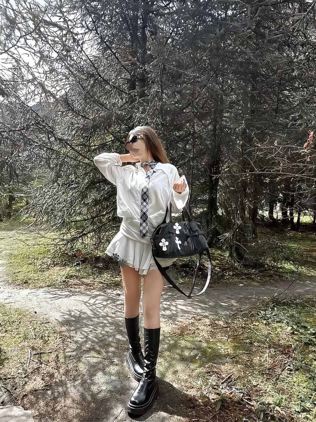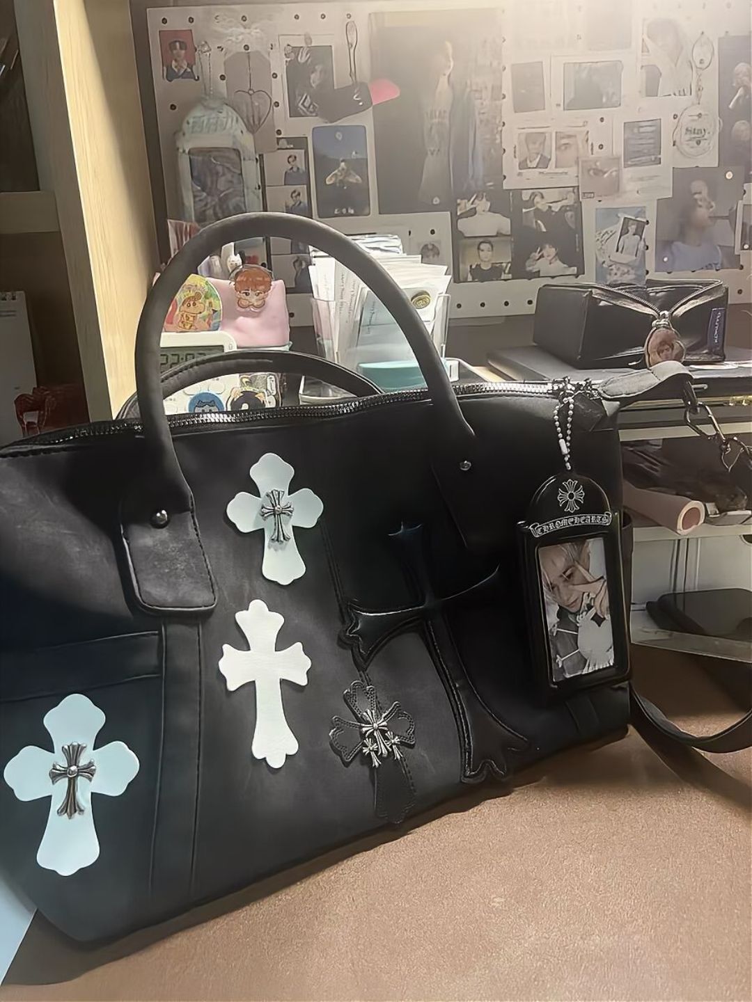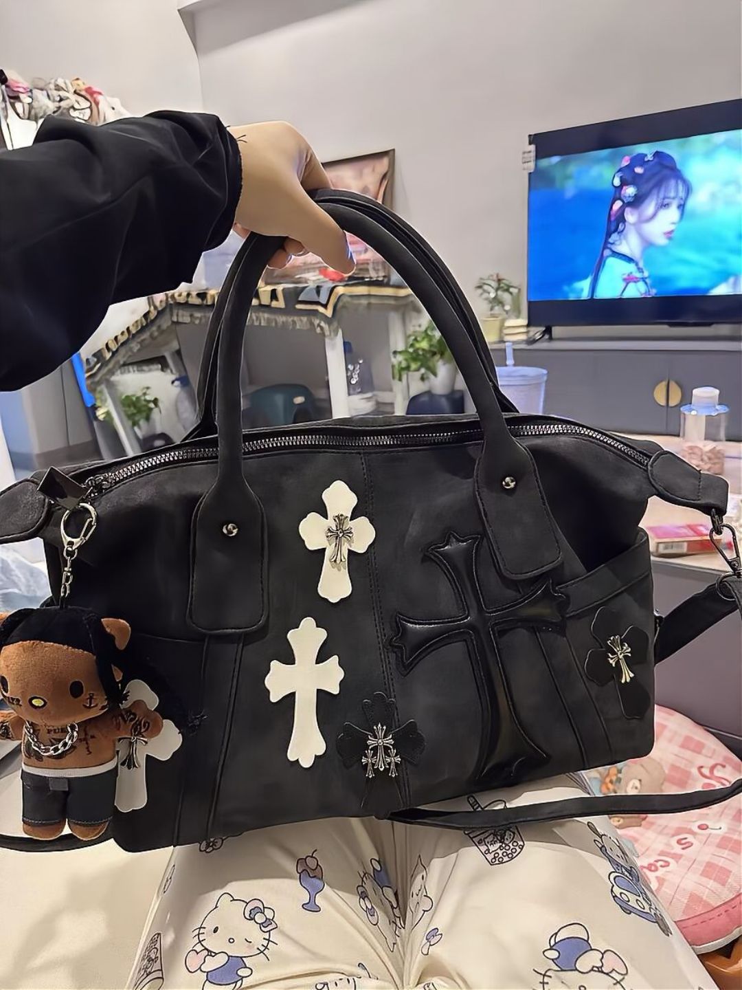 트렌디 한 쿨 하이 컬러 값 흑백 패치 워크 여행 가방 로마 금속 크로스 숄더 크로스 바디 백