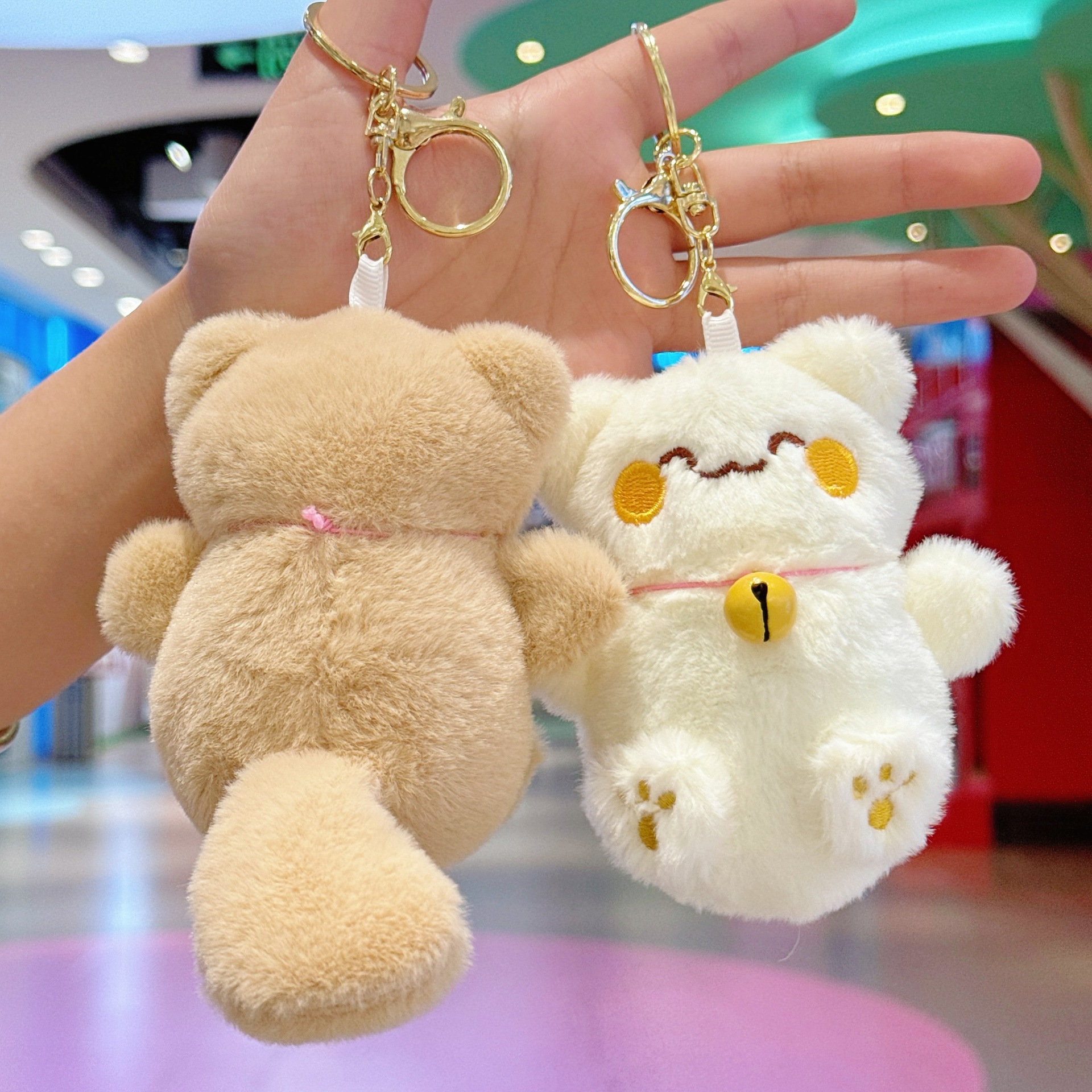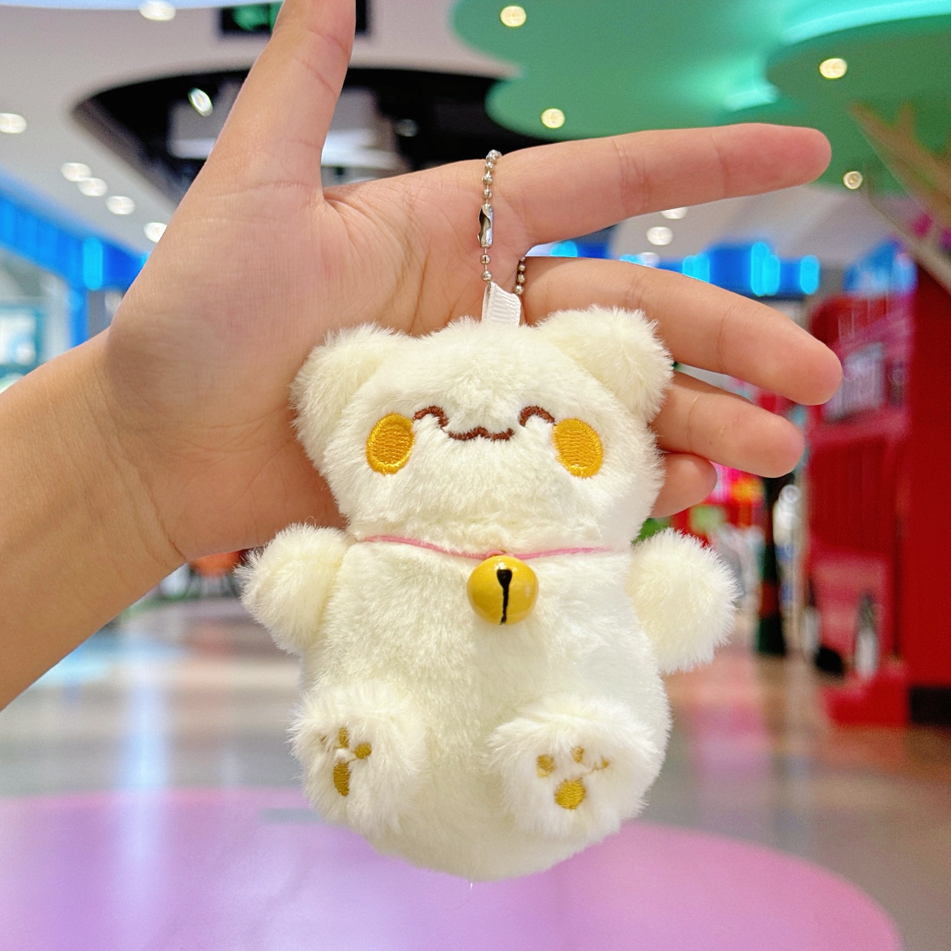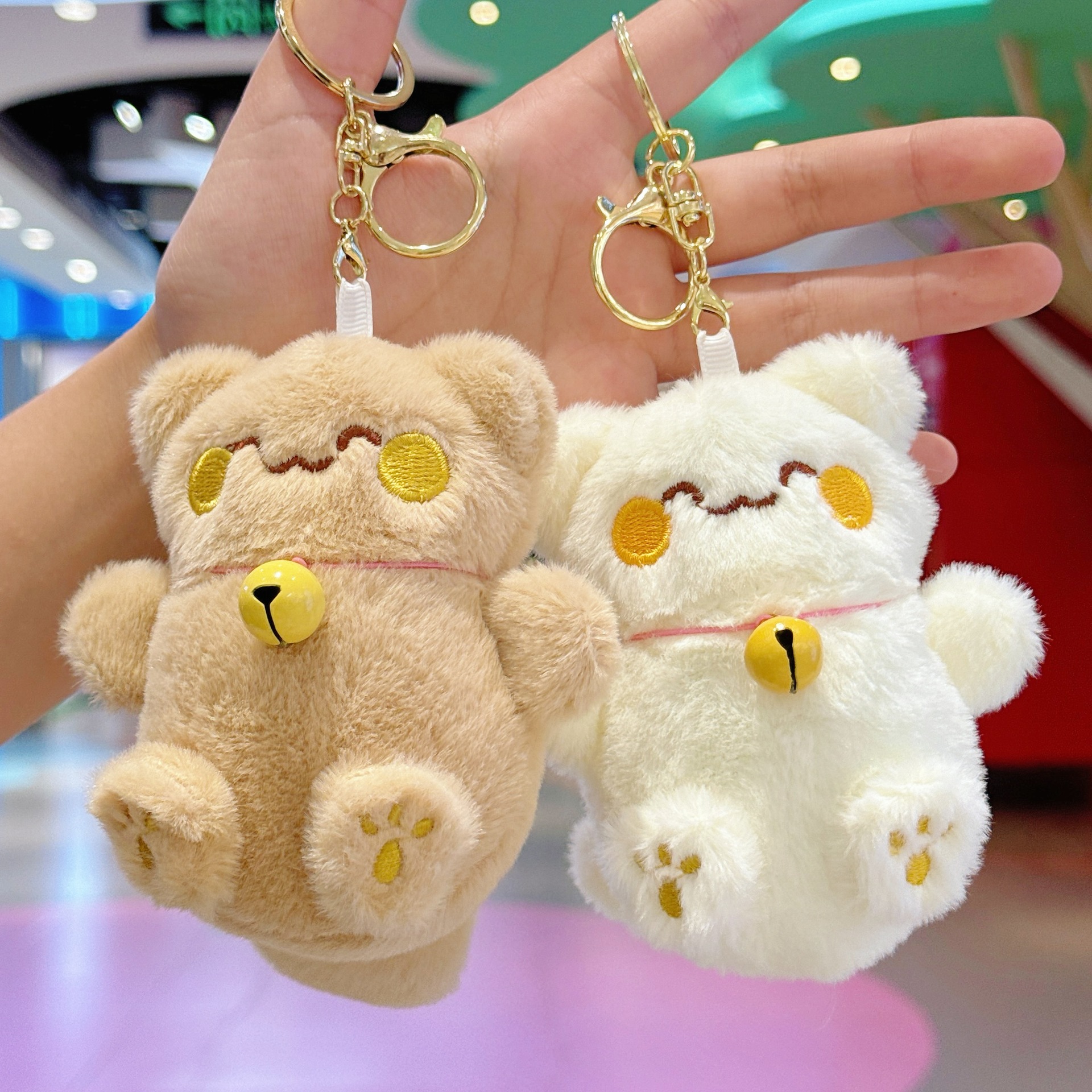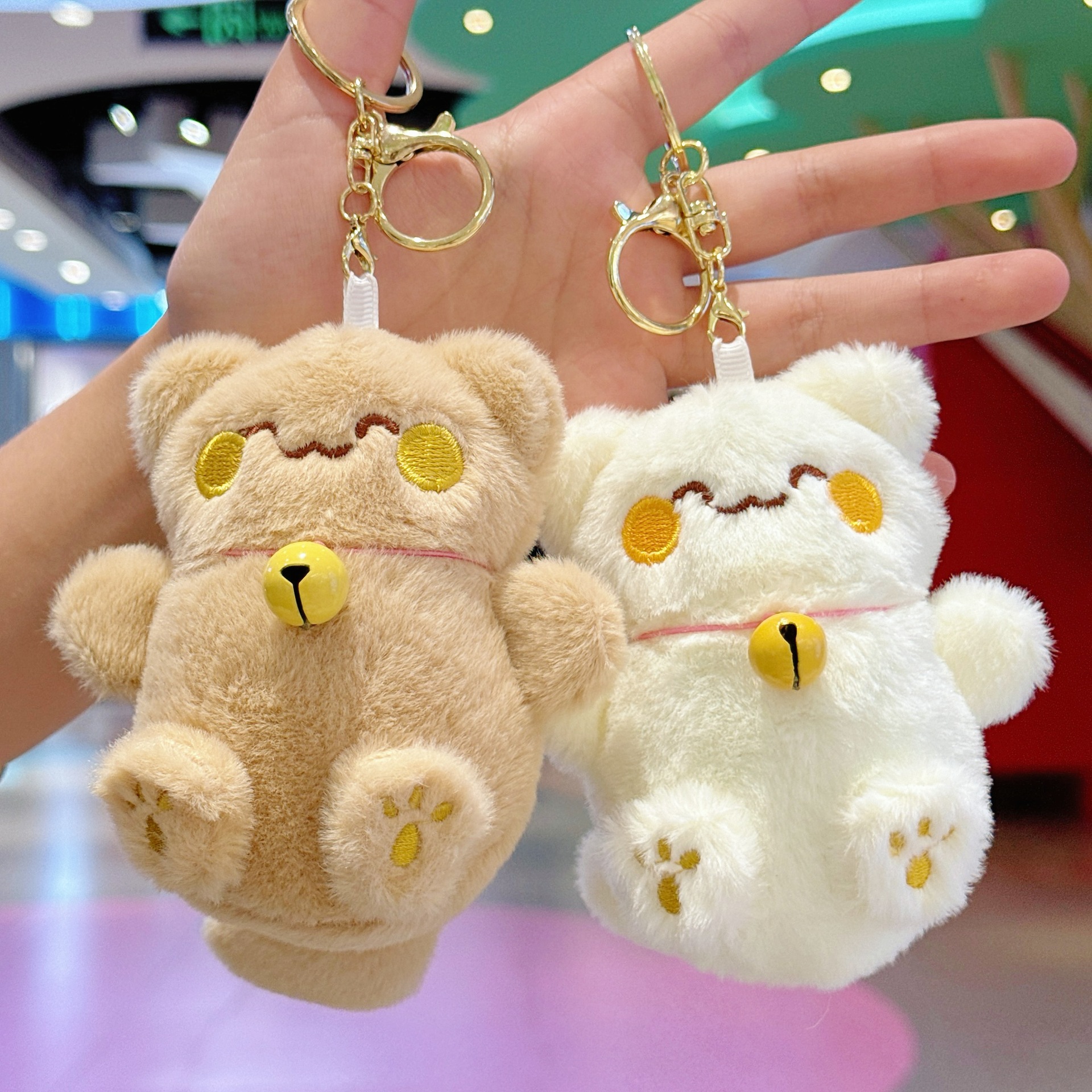 국경 귀여운 행운의 고양이 펜던트 봉제 장난감 인형 벨 고양이 가방 펜던트 키 체인 인형스토어 가기