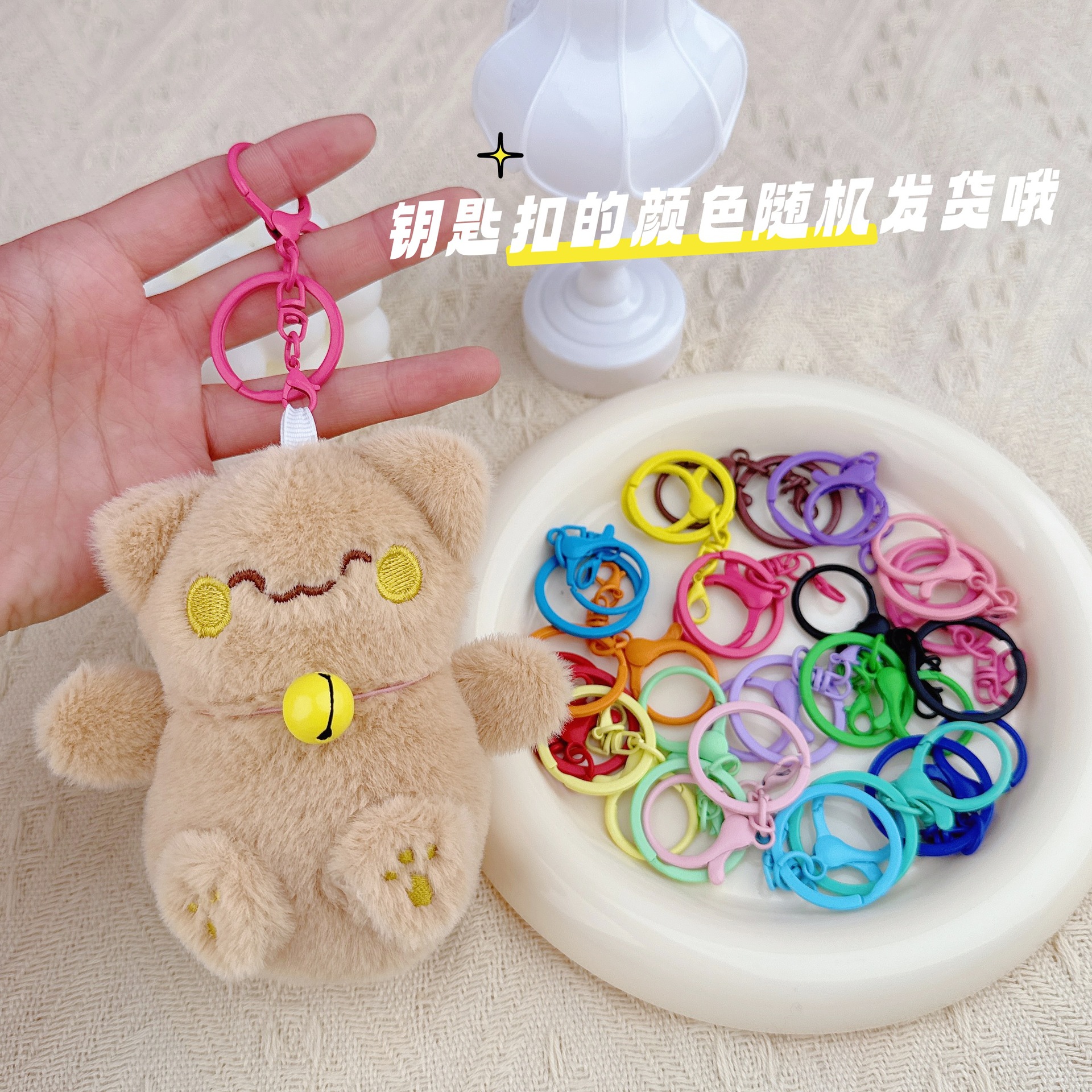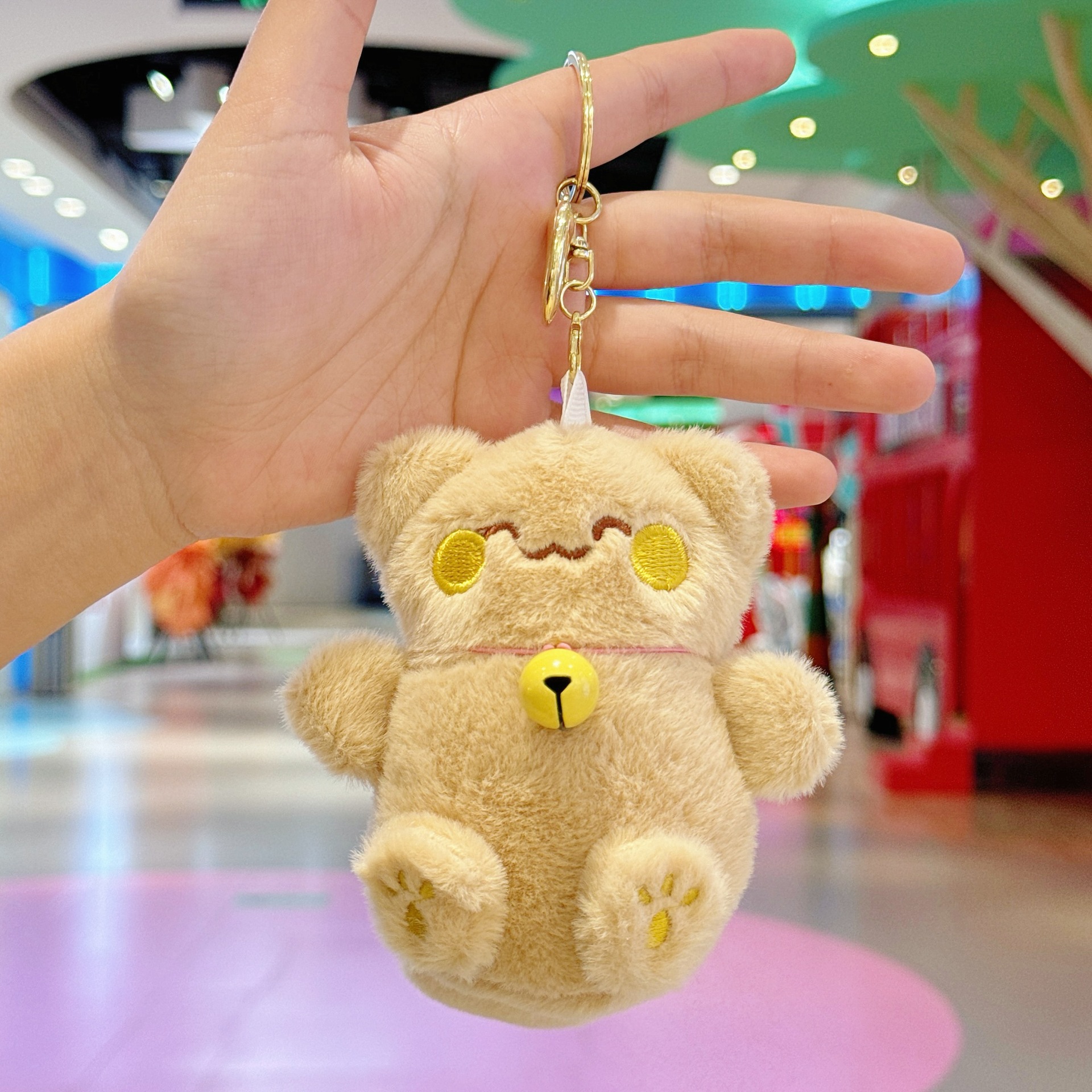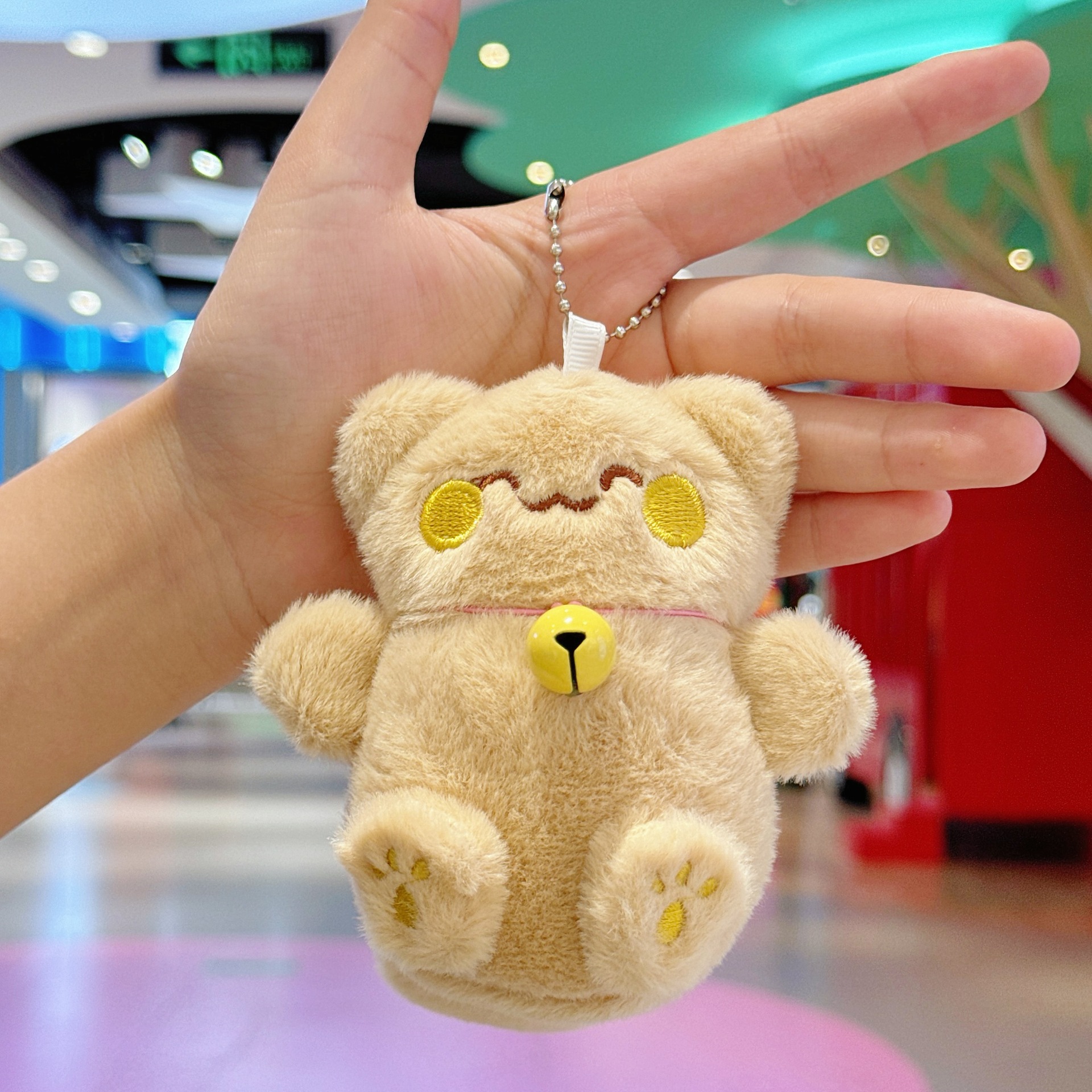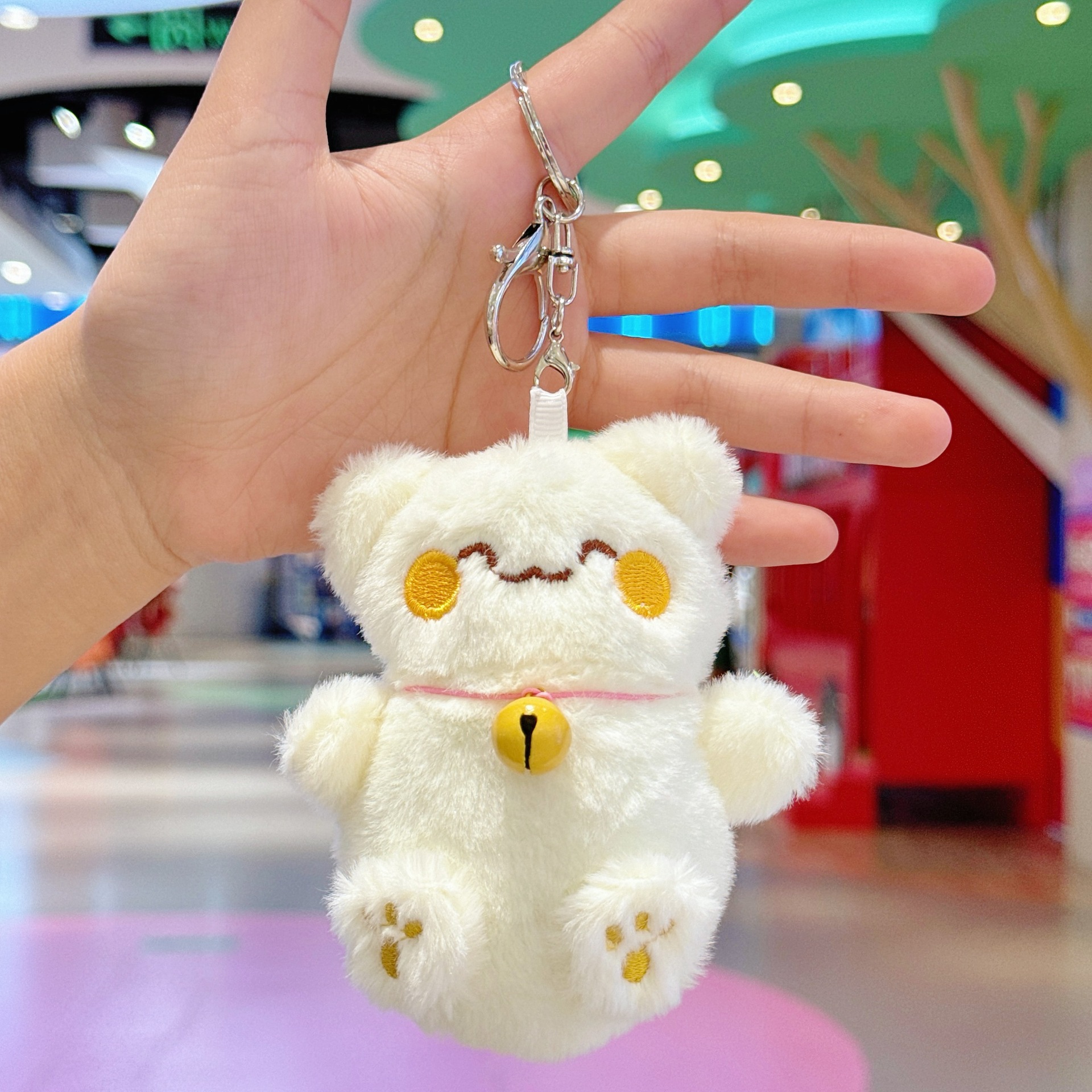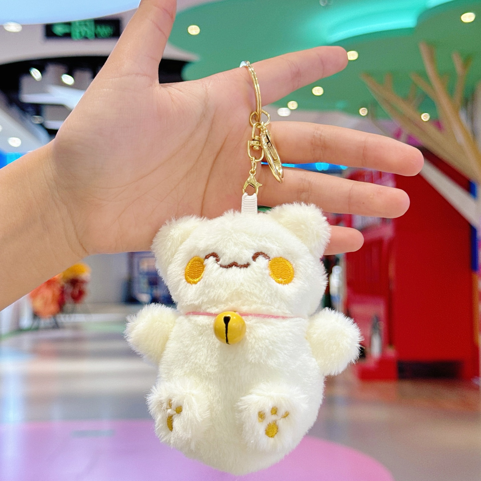 국경 귀여운 행운의 고양이 펜던트 봉제 장난감 인형 벨 고양이 가방 펜던트 키 체인 인형스토어 가기