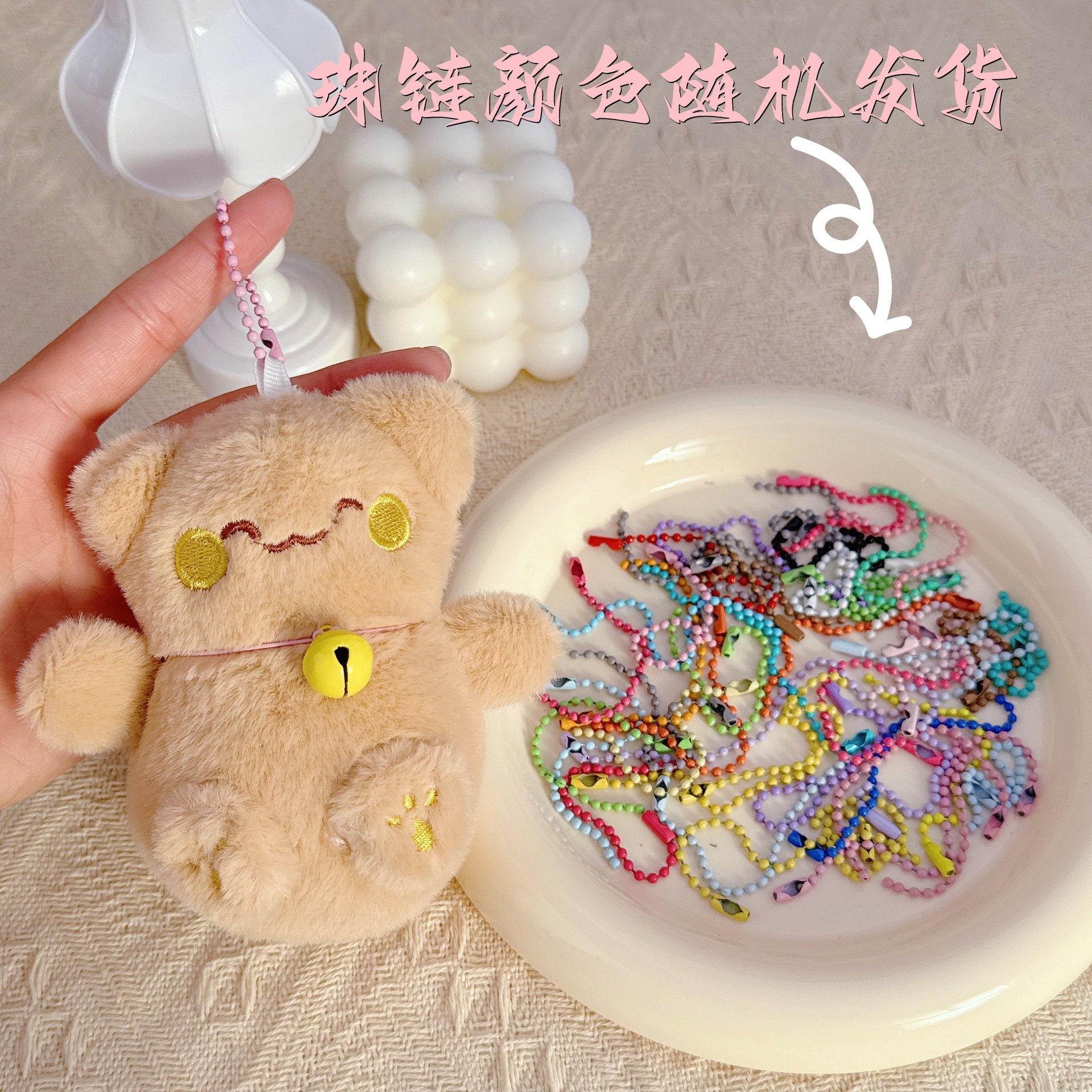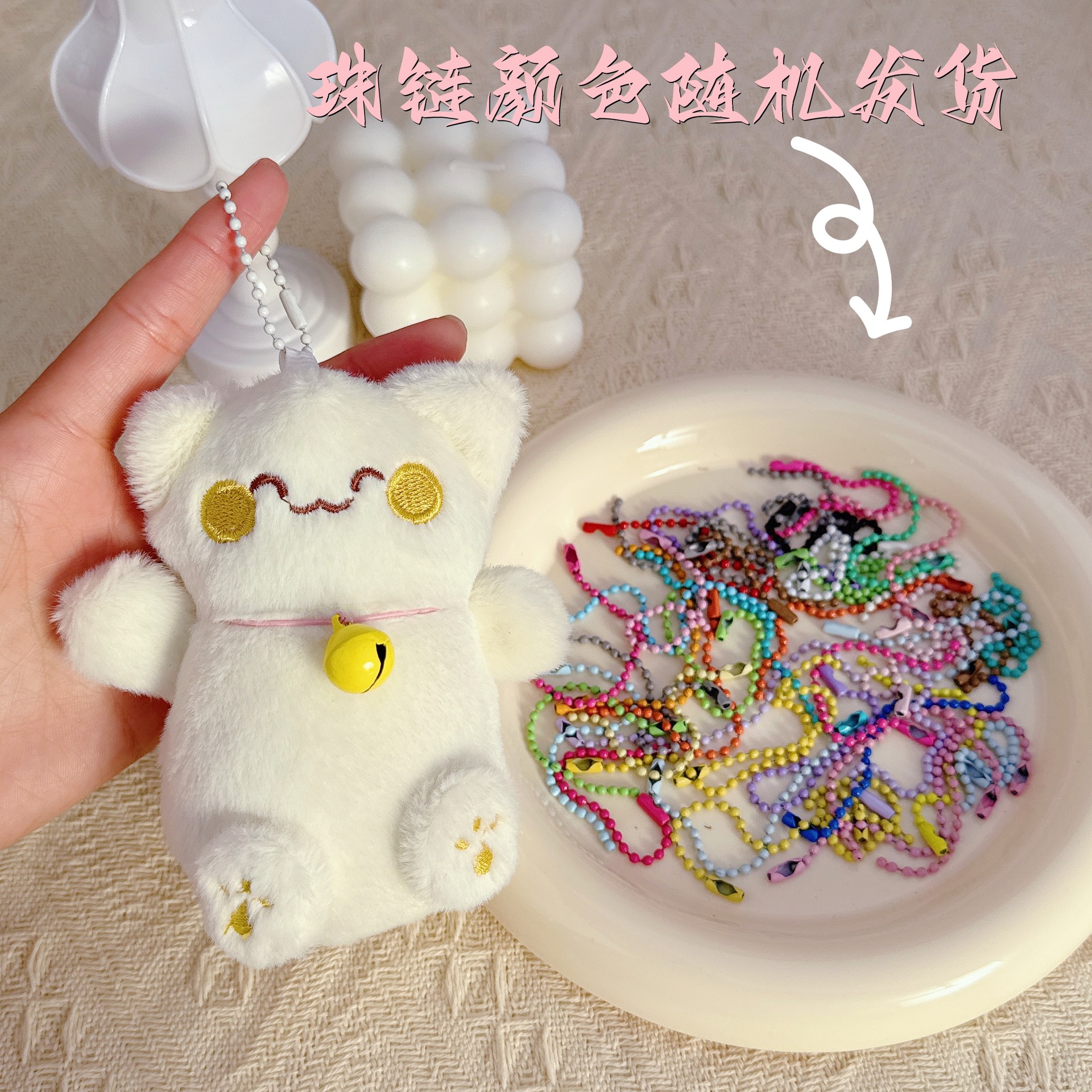 • 흰색 복고양이 + 랜덤 색상 구슬 체인 1개