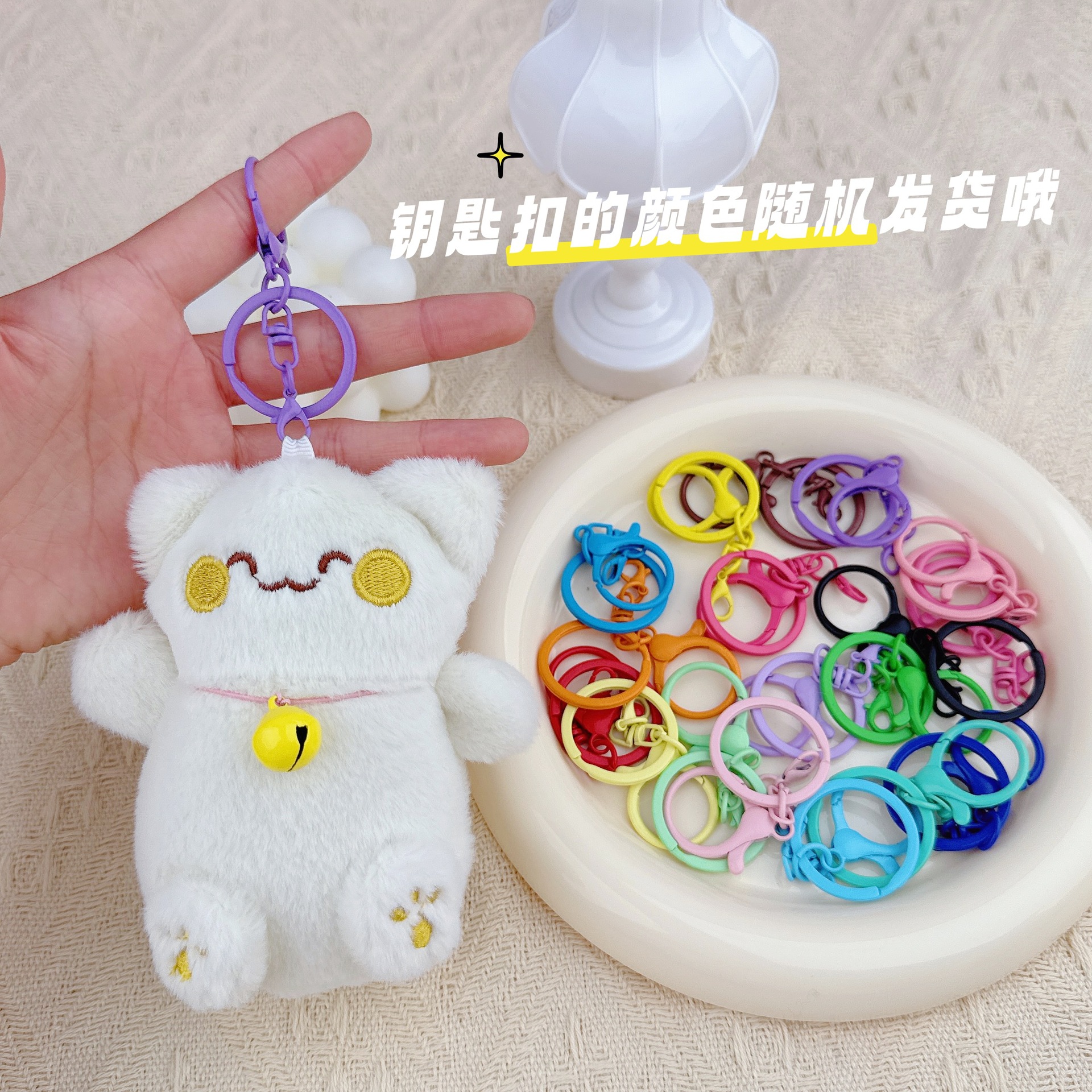 • 흰색 복고양이 + 랜덤 색상 키링 1개