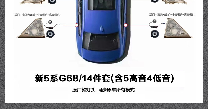 24 BMW 새로운 5 시리즈 발광 커버 G68G60 업그레이드 트위터 A 필러 캐노피 분위기 환경 조명에 적용 가능