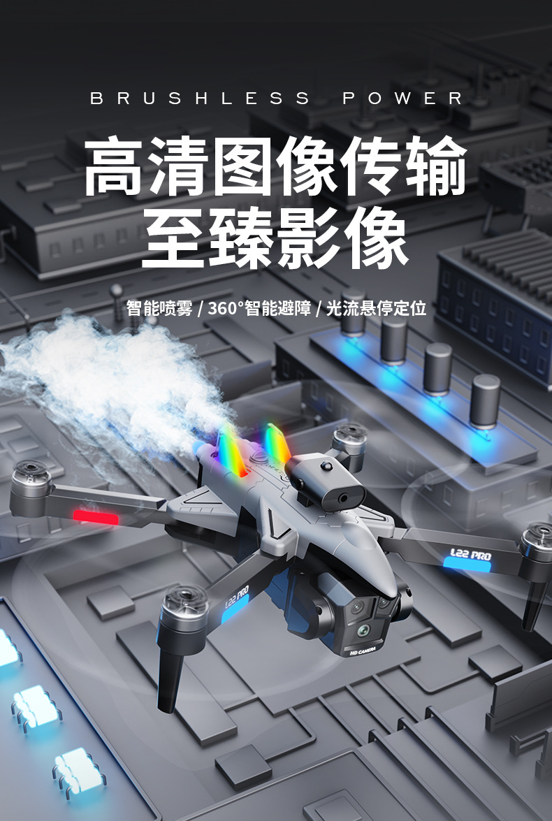 국경 간 L22 스프레이 브러시리스 드론 4K 듀얼 카메라 HD 항공 사진 접이식 원격 제어 항공기 쿼드콥터