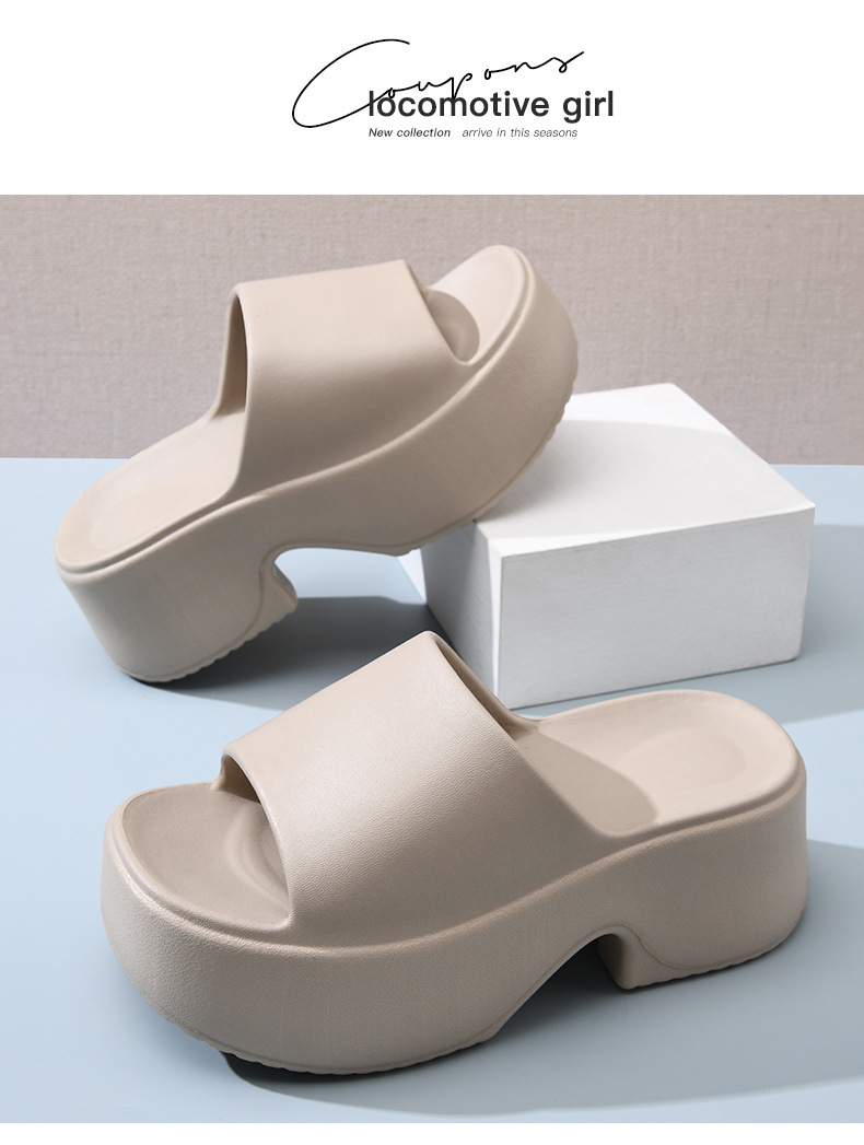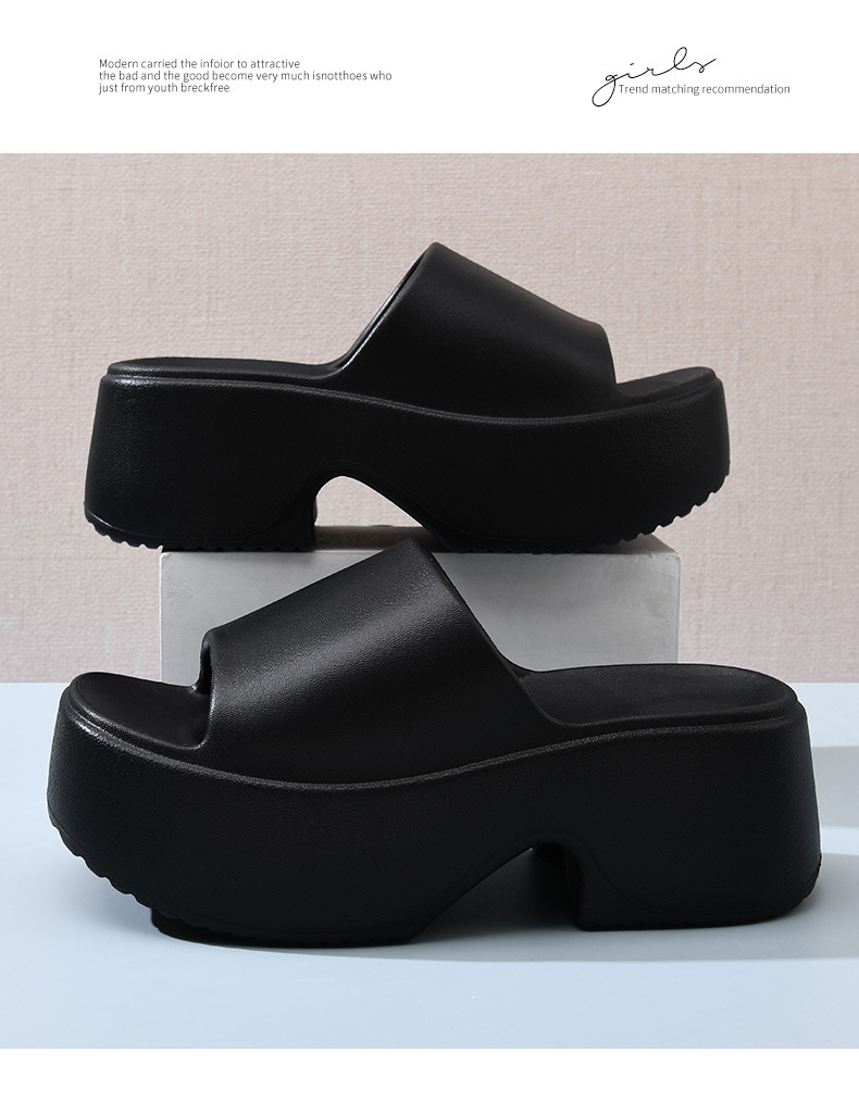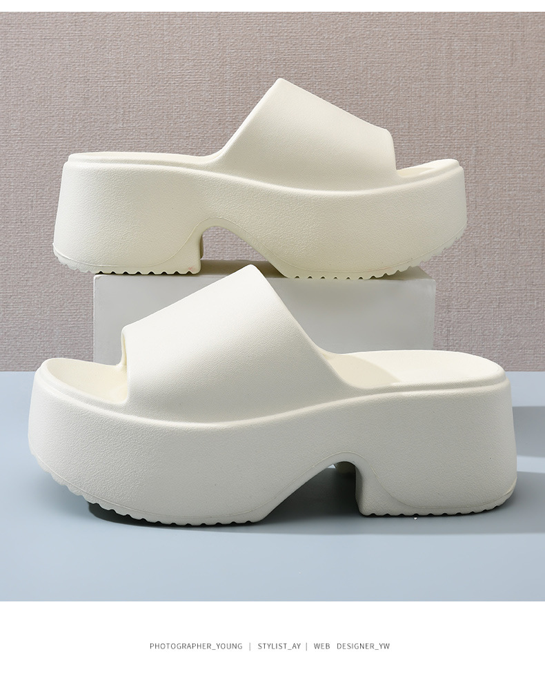 두꺼운 바닥 슬립 온 슬리퍼 여성용 여름 착용 높이 증가 샌들 EVA 고급 미끄럼 통기성 착용 방지 비치 슬라이드스토어 가기