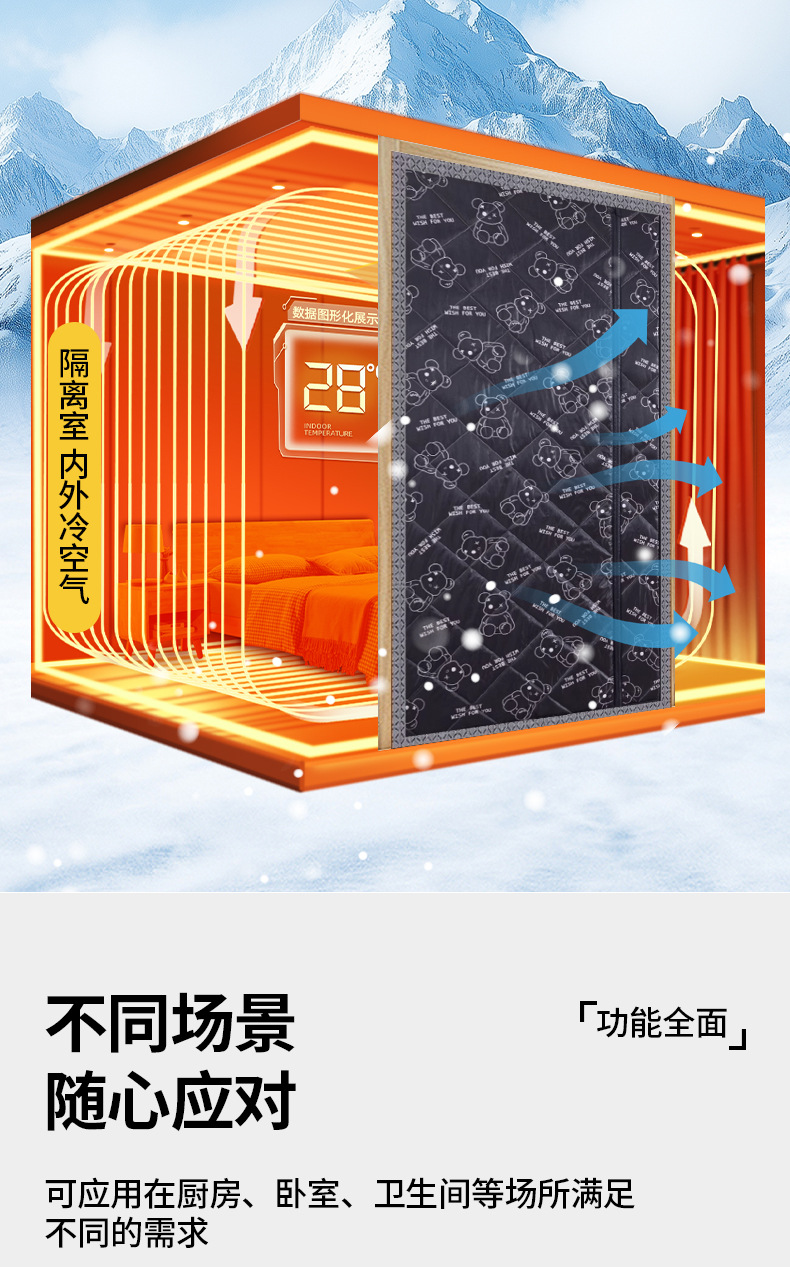 겨울면 문 커튼 두껍게 따뜻한 냉방풍 가정용 방음 거실 입장 문 구멍이없는 에어컨 파티션 커튼