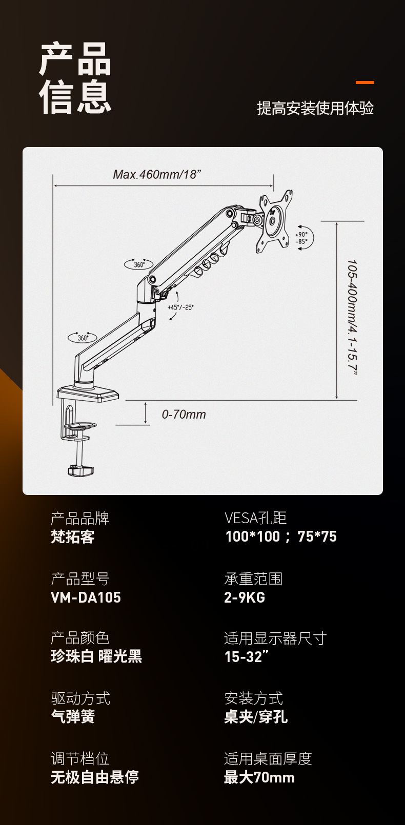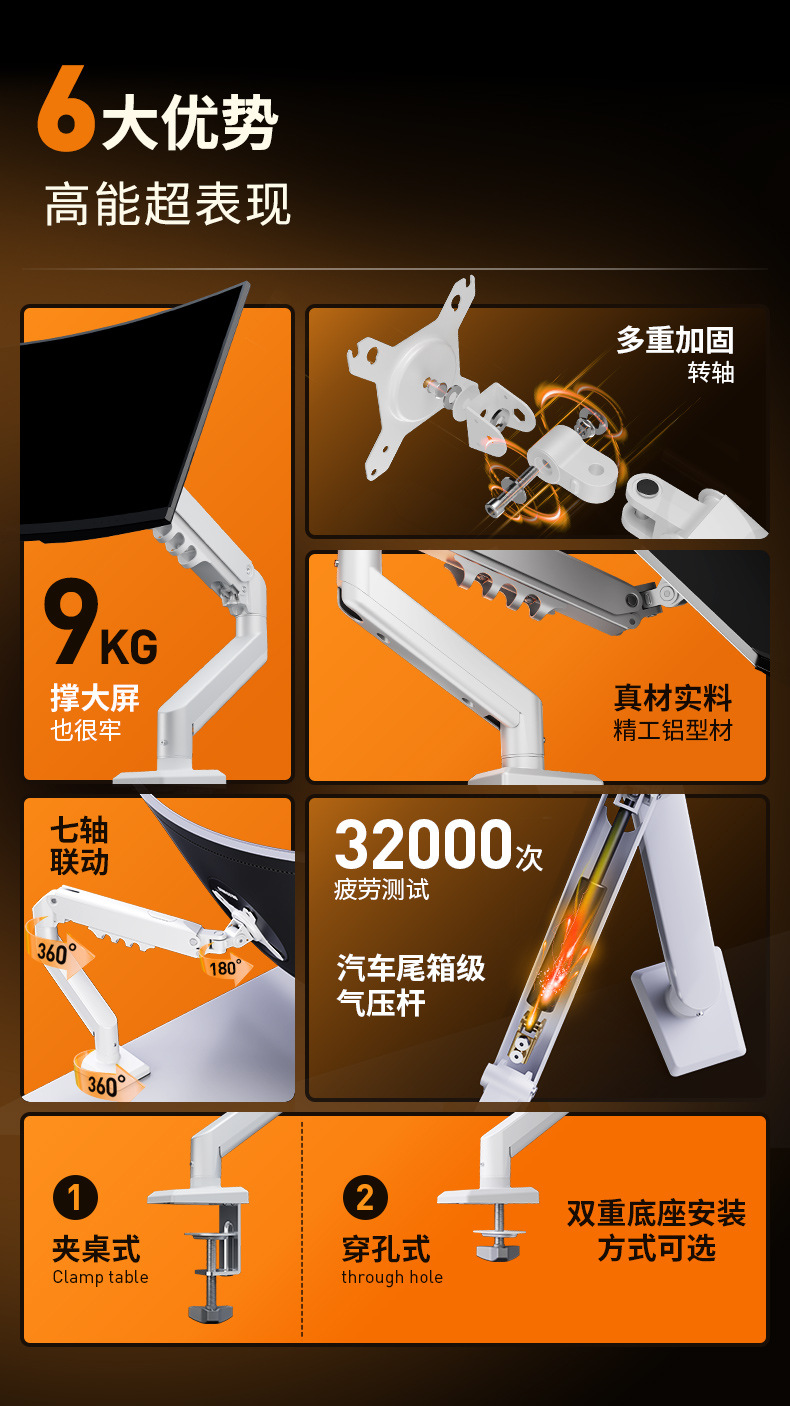 컴퓨터 모니터 스탠드 메카니컬 암 회전식 높이 조절 듀얼 스크린 컴퓨터 스탠드 무타공스토어 가기