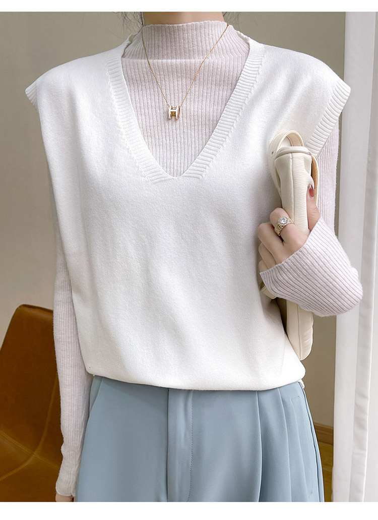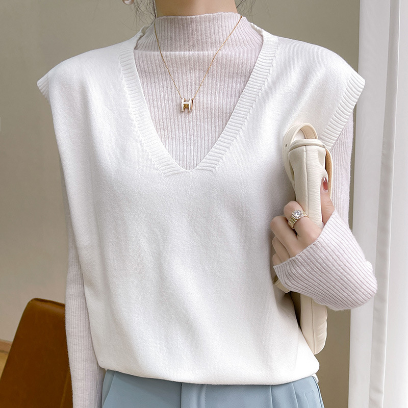 가을과 겨울 새로운 니트 스웨터 조끼 여성 V 넥 민소매 스웨터 니트 조끼 느슨한 플러스 사이즈 매칭 셔츠