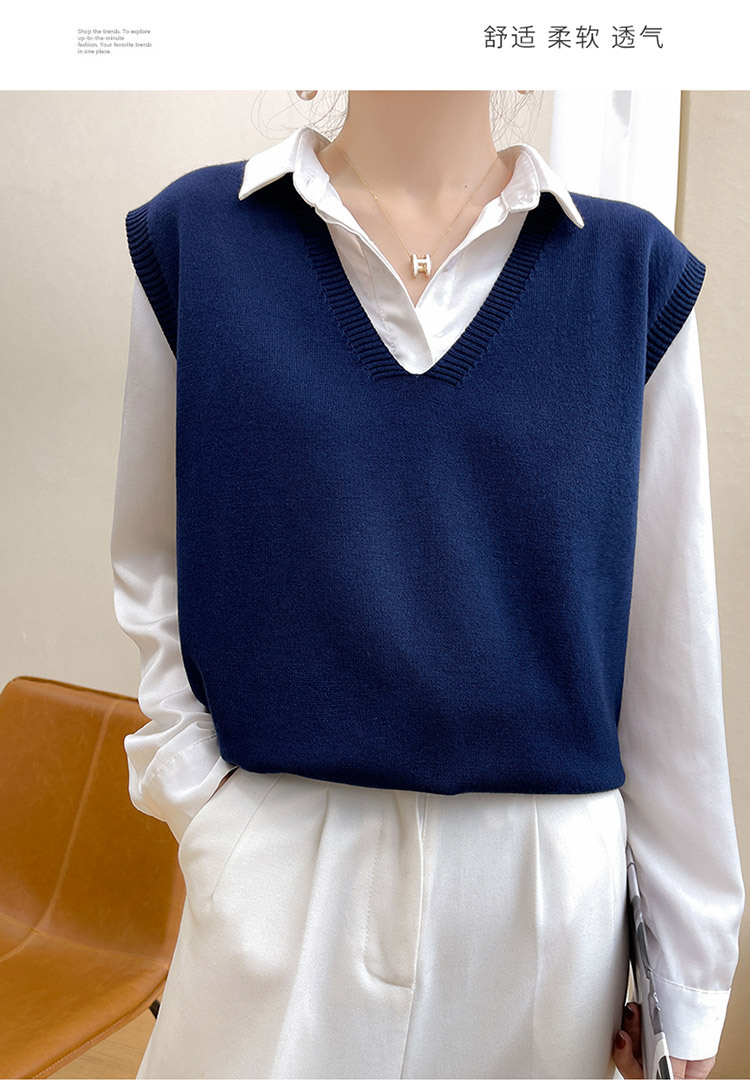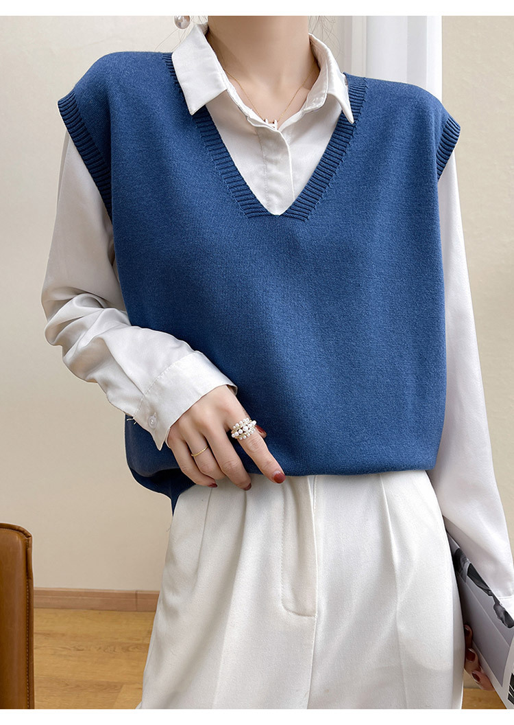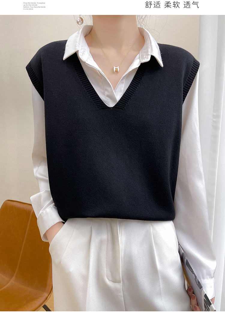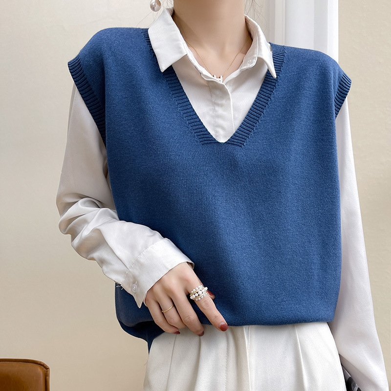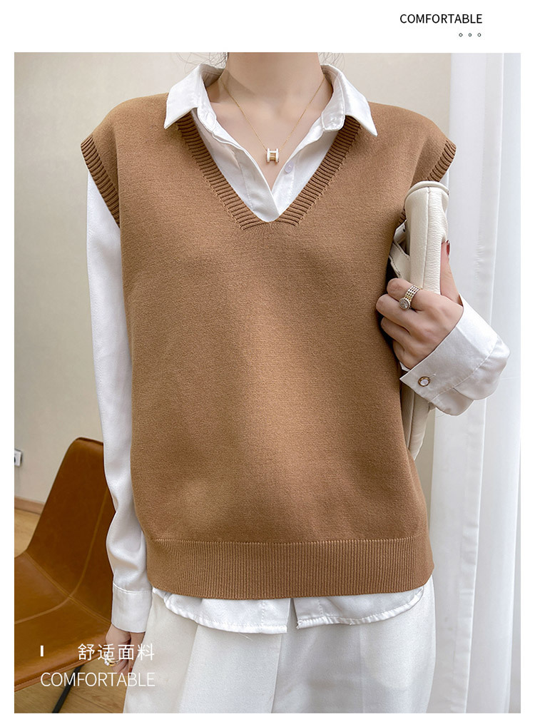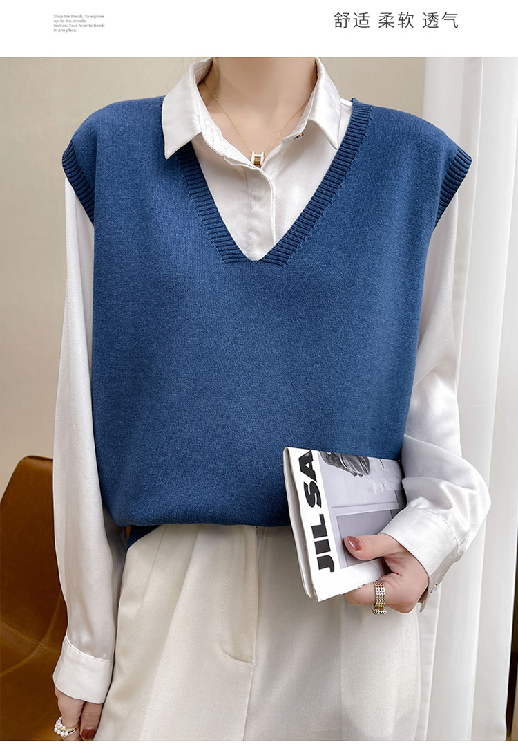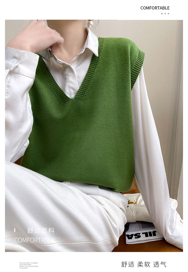 가을과 겨울 새로운 니트 스웨터 조끼 여성 V 넥 민소매 스웨터 니트 조끼 느슨한 플러스 사이즈 매칭 셔츠스토어 가기