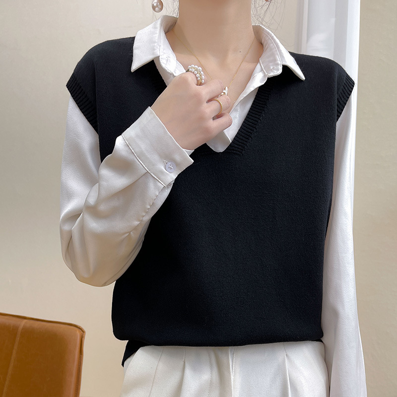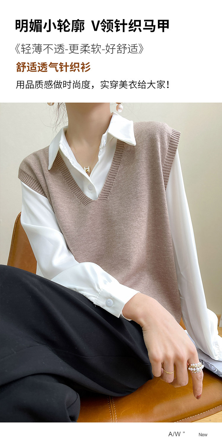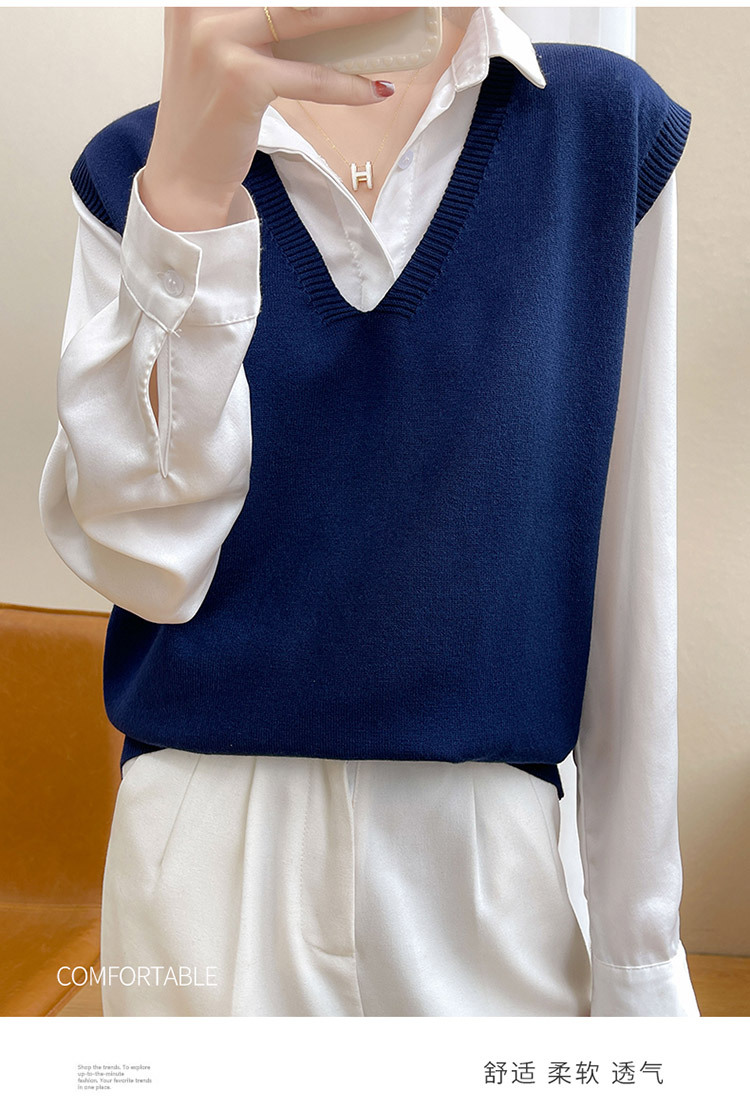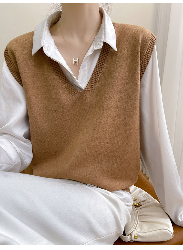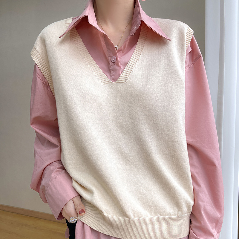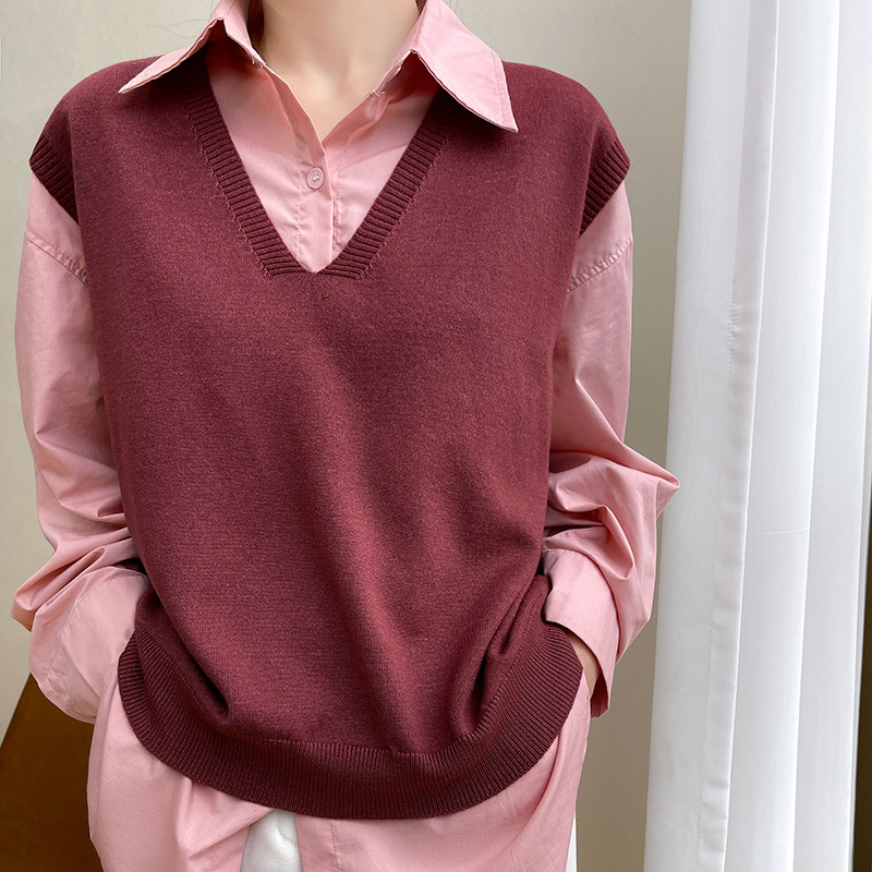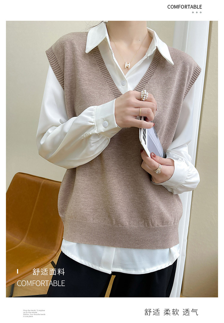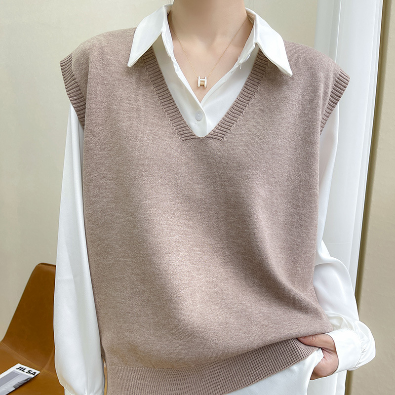가을과 겨울 새로운 니트 스웨터 조끼 여성 V 넥 민소매 스웨터 니트 조끼 느슨한 플러스 사이즈 매칭 셔츠스토어 가기